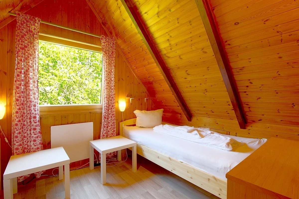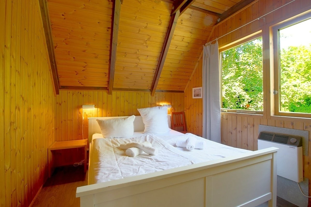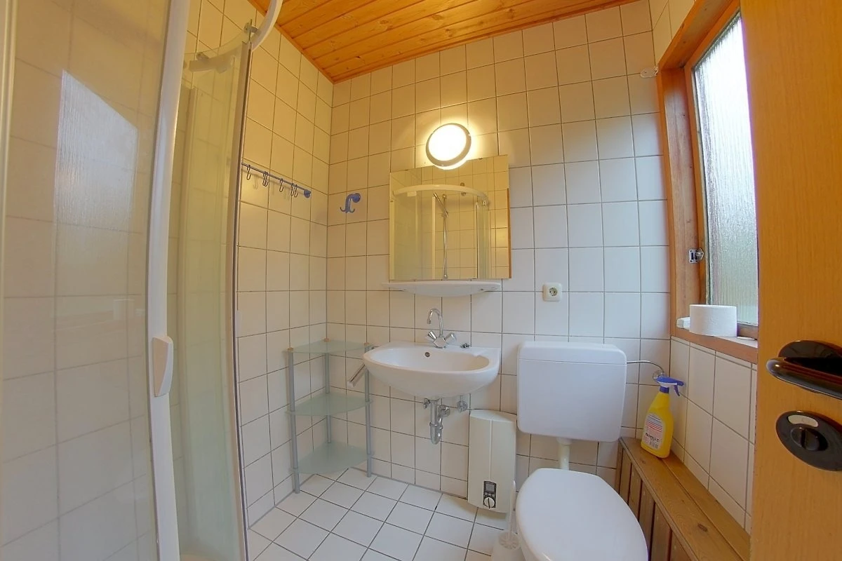 Im Erdgeschoss des Hauses befindet sich der offene Wohn-, Ess- und Küchenbereich, ein Schlafzimmer mit Doppelbett (1,60 x 2,00 m) durchgehende Matratze und ein einfaches Duschbad mit Fenster. Das Wohnzimmer verfügt über einen Kaminofen und FLAT-TV. Ab sofort auch kostenloses W-Lan verfügbar. Für die kleinen Gäste gibt es eine Kinderspielecke.