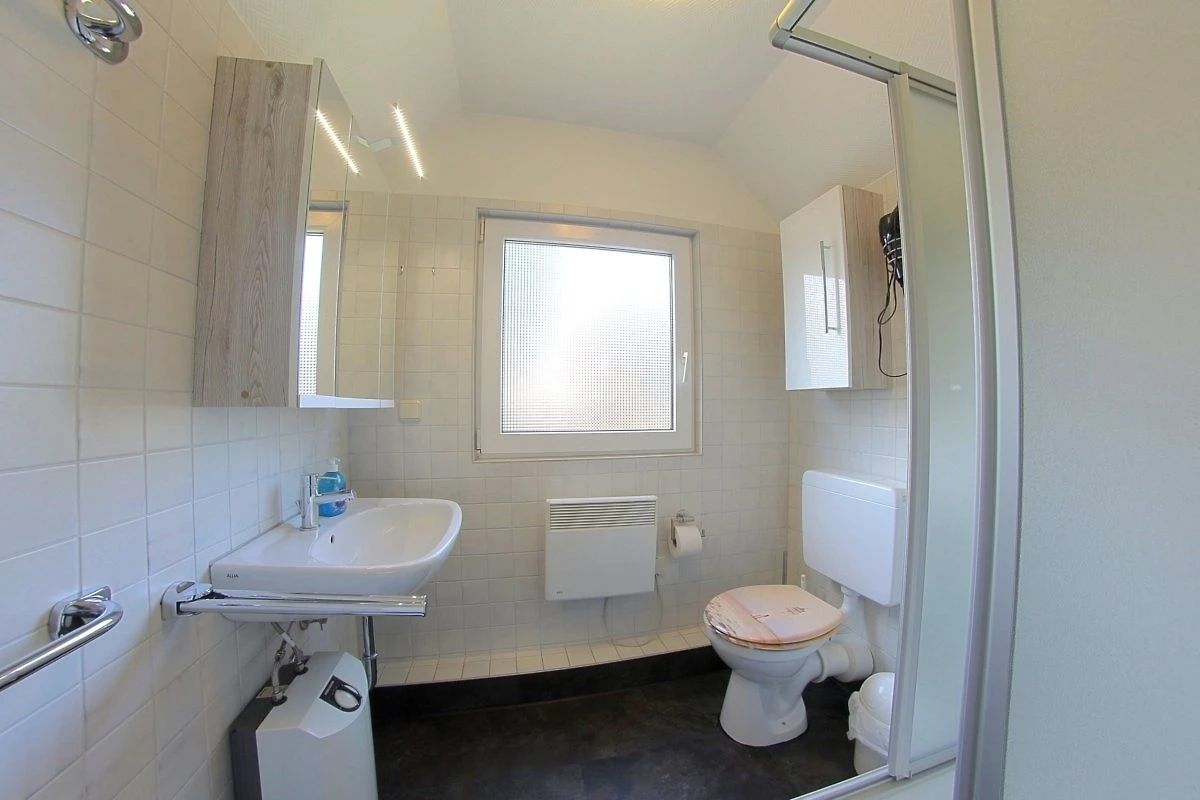 In beiden Geschossen finden Sie ein Bad mit Toilette/Dusche (OG) oder Toilette/Badwanne (EG). Für einen angenehmen Aufenthalt sorgt auch der grosszügige Wohn- und Essbereich mit offener Küche im Erdgeschoss und Zugang zur Terrasse.