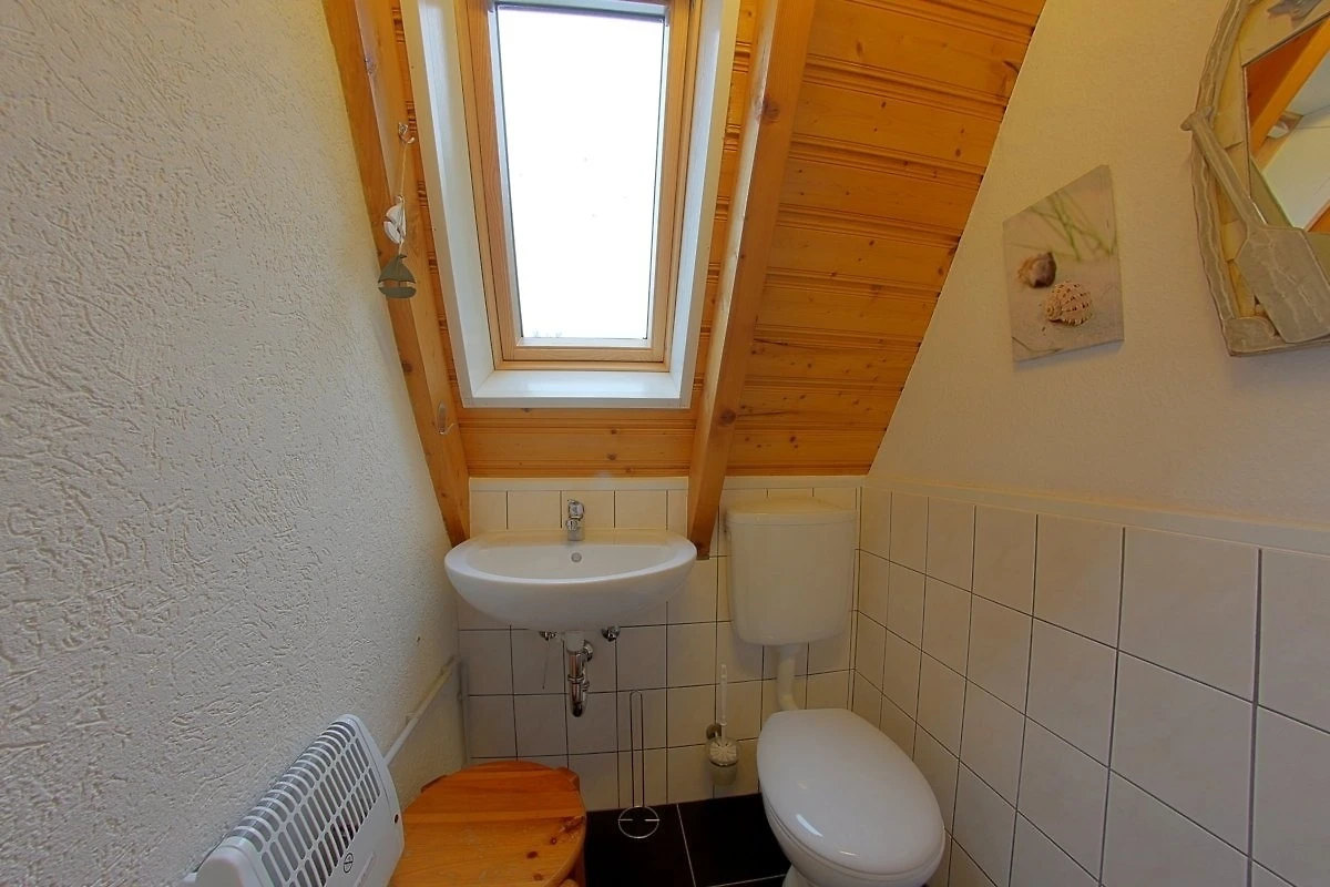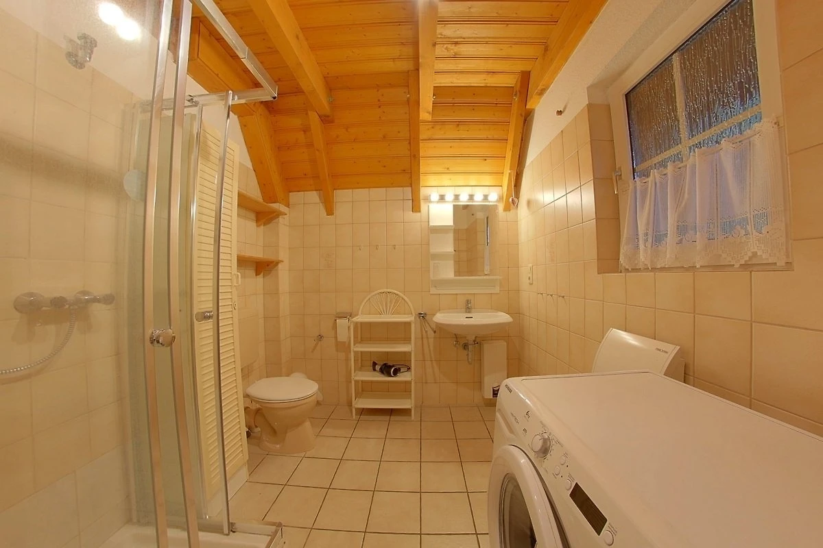Das Badezimmer ist hell und freundlich und hat ein Tageslichtfenster. Für die "kleine Wäsche" steht im Badezimmer eine Waschmaschine.