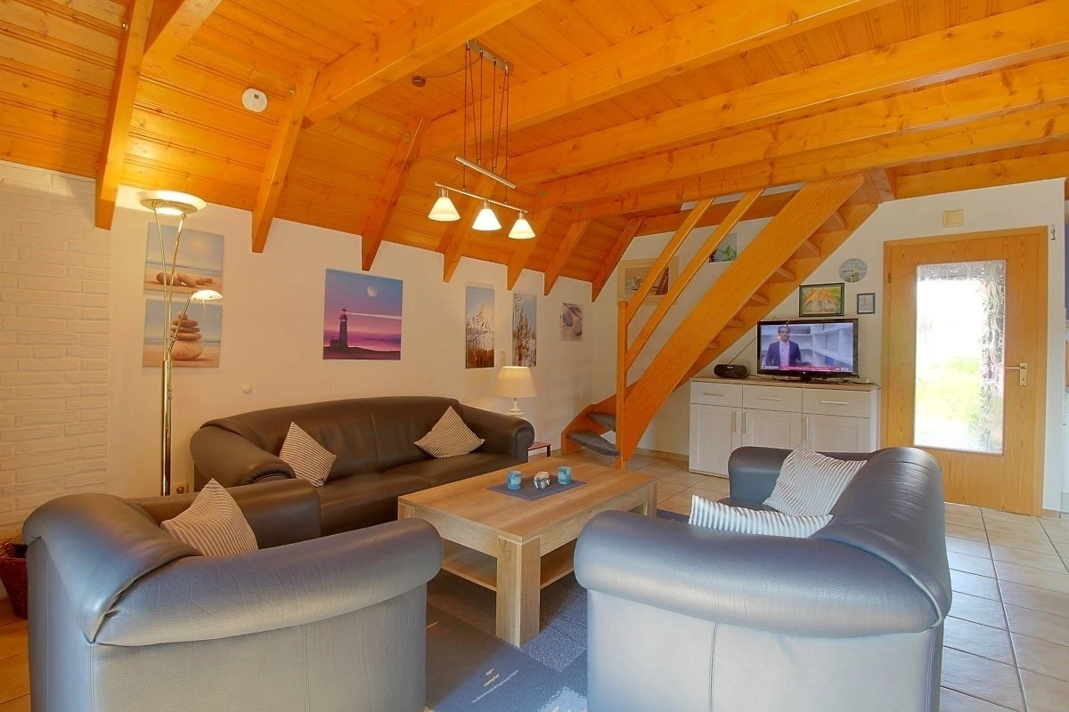 Im gefliesten Erdgeschoss befindet sich der offene Wohn- Essbereich mit Kaminofen und Flachbild-TV.[nbsp] In der komplett ausgestatteten Küche mit Geschirrspüler kann der Smutje tolle Gerichte zaubern. Vom Wohnraum aus geht es direkt auf die uneinsehbare Terrasse mit Gartenmöbeln.