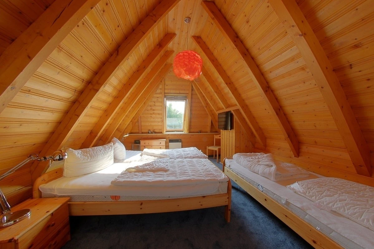 Im Obergeschoss erwartet Sie ein Elternschlafzimmer mit Doppelbett, einem Einzelbett und TV, sowie ein Schlafzimmer mit zwei Einzelbetten.