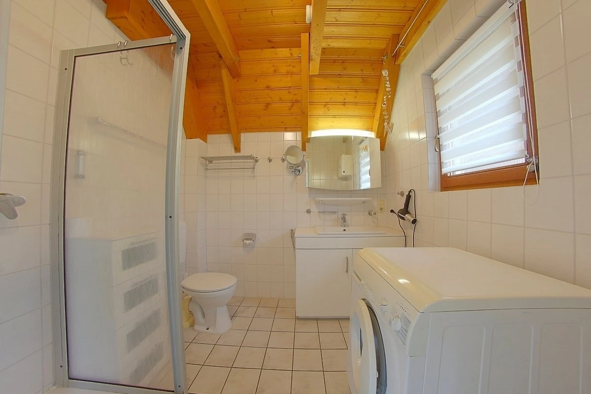 Duschbad mit Waschmaschine stehen im Erdgeschoss zur Verfügung und ein zusätzliches WC im Obergeschoss ist vorhanden.