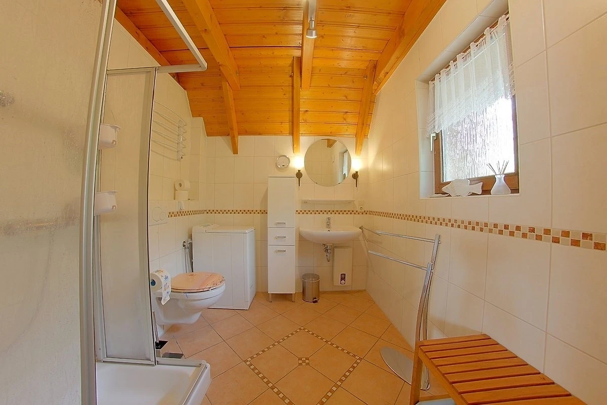 Ein helles, modernisiertes Duschbad mit Waschmaschine steht Ihnen ebenfalls im Erdgeschoss zur Verfügung.