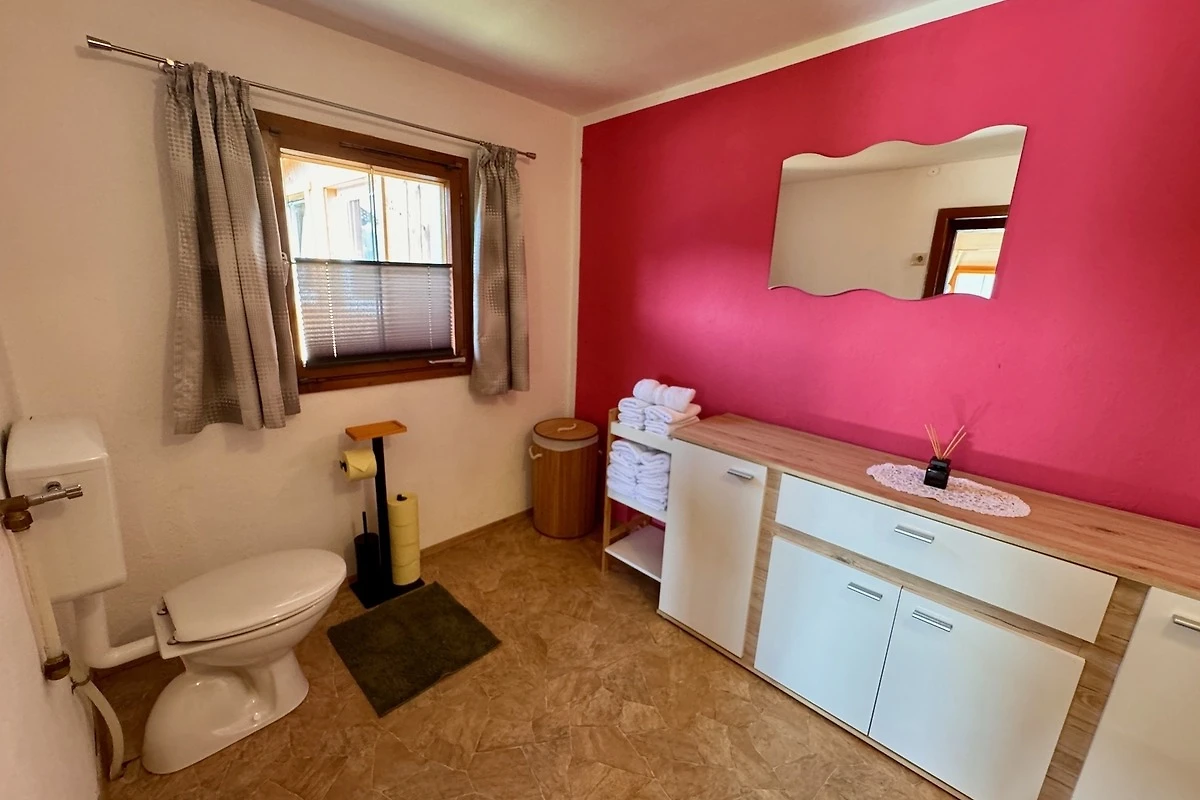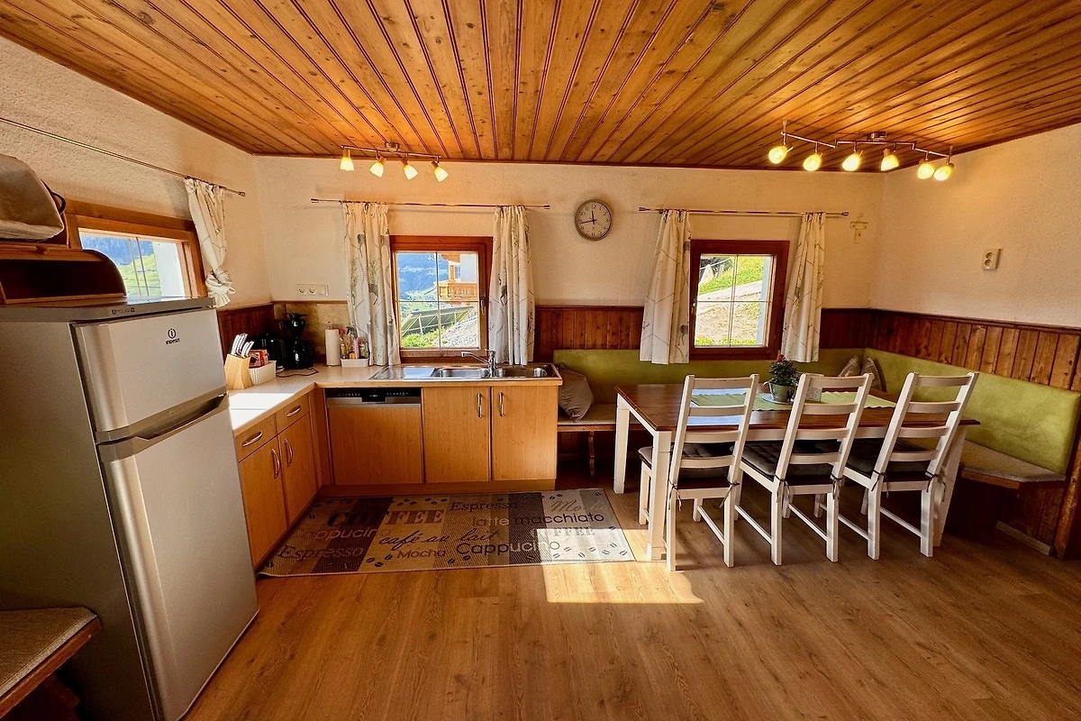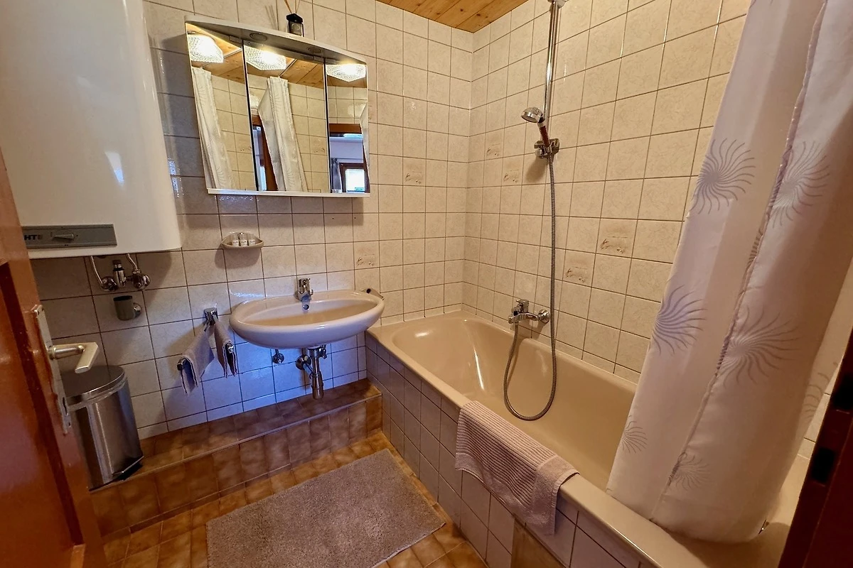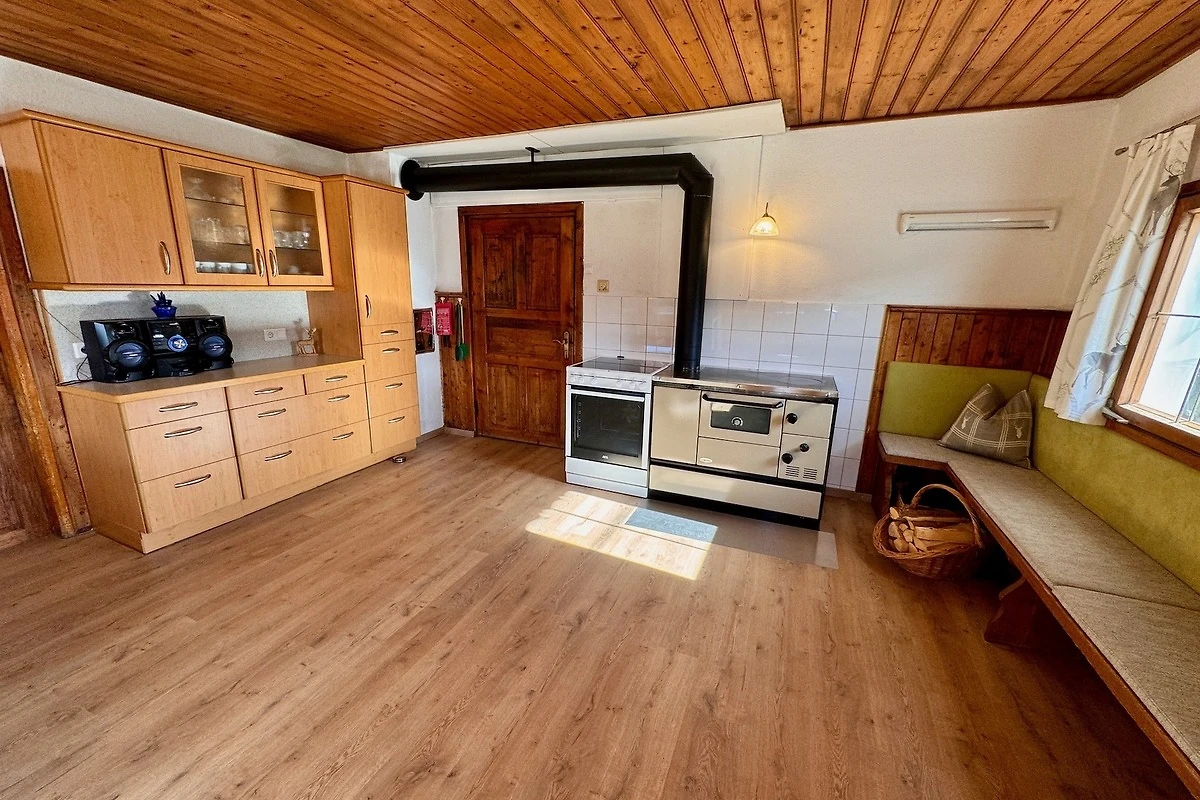 Die Wohnküche ist mit Holz- und Elektroherd sowie Spülmaschine gut ausgestattet. In der geräumigen Stube mit wärmendem Kachelofen und Fernseher können Sie den Tag gemütlich ausklingen lassen. Auch ein Bad mit Waschbecken und WC darf nicht fehlen.
