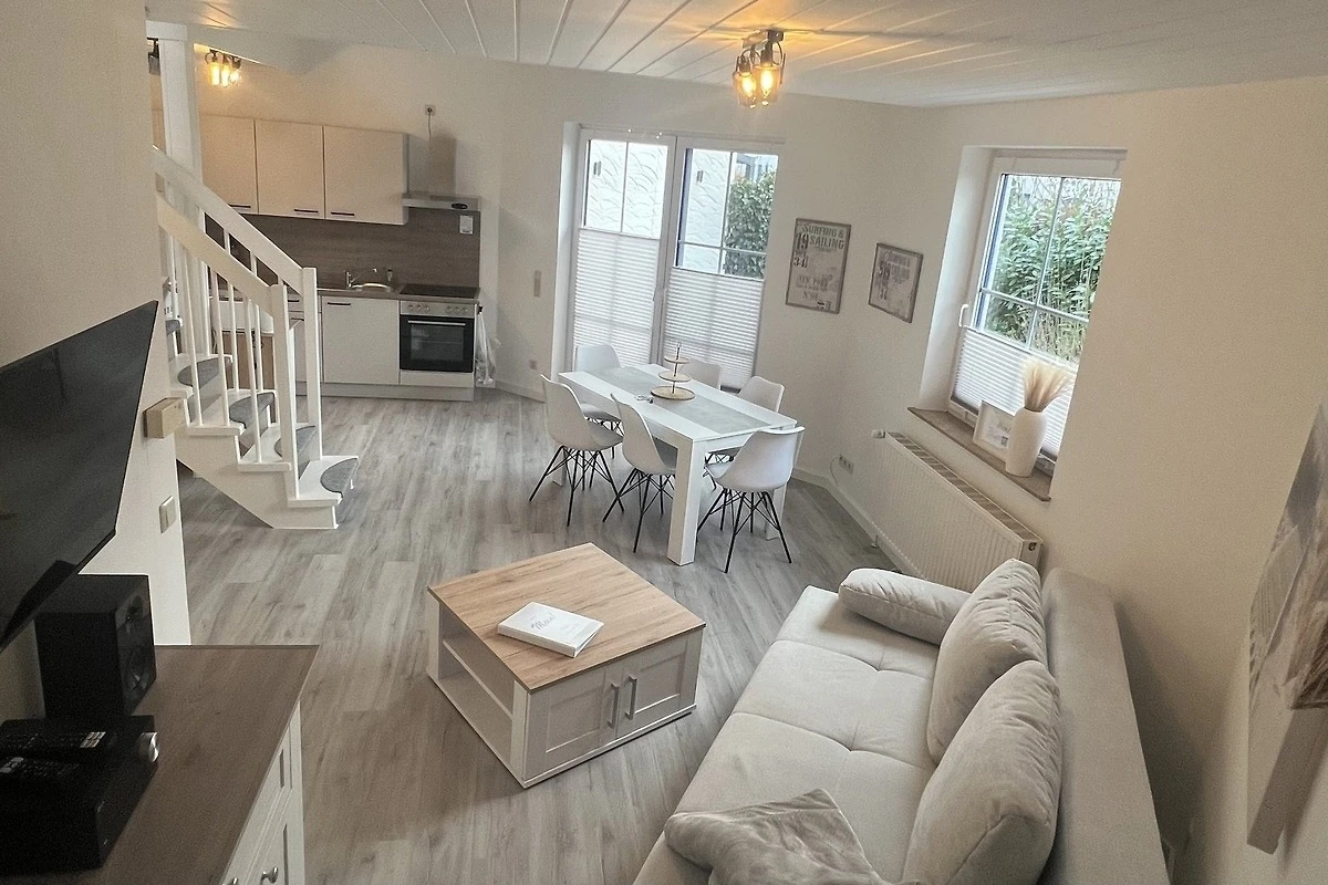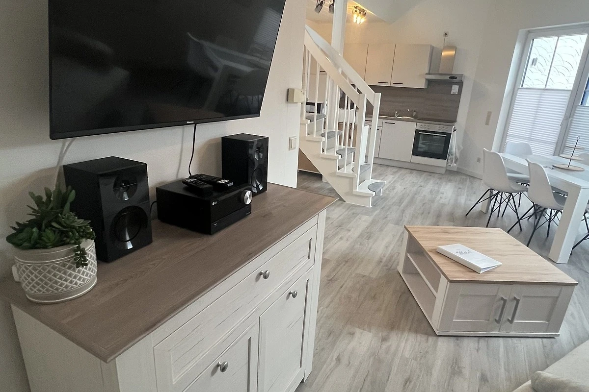 3 Fernseher im Haus bieten höchsten Komfort. Das Achteck-Haus mit Blick auf die Schafe am Deich. WLAN im ganzen Haus. Im Erdgeschoss finden Sie einen offenen Wohn-/Ess- und Küchenbereich mit sehr gut ausgestatteter Einbauküche, die keine Wünsche offen lässt und den Smutje allein oder mit seinem Küchenteam zum Kochen einlädt.