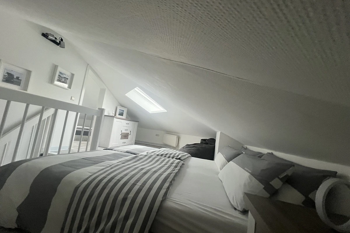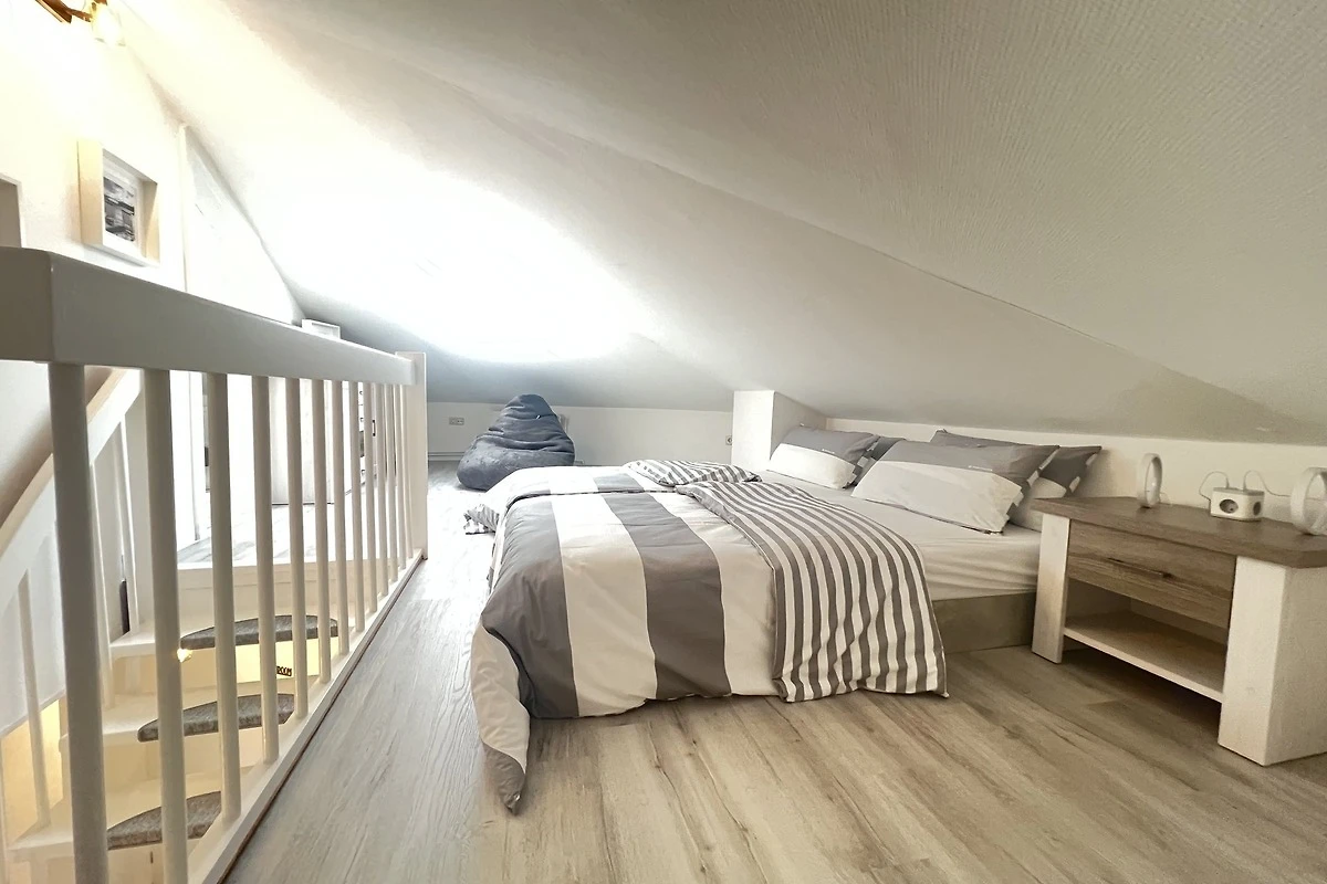 Ein Doppelbett von dem man auch in den Sternenhimmel schauen kann, befindet sich auf der offenen Galerie. Weiterhin auf der Galerie ein Spielbereich (ideal für z.B. eine Carrera-Bahn für die Kleinen und ein Sitzsack.