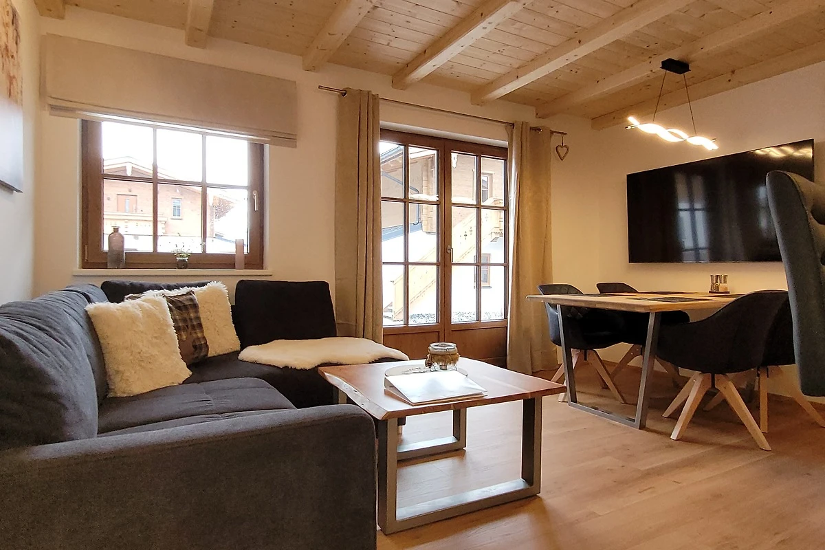 Die Wohnung ist ausschließlich für Nichtraucher geeignet, was zu einer angenehmen Atmosphäre beiträgt. Warme Holzelemente, sichtbare Balken und liebevolle Details schaffen ein einmaliges Wohngefühl, während große Fenster den Blick auf die Alpen freigeben. Hier genießen Sie Komfort und Natur in perfekter Harmonie – Ihr idealer Rückzugsort für erholsame Ferien in Rauris.