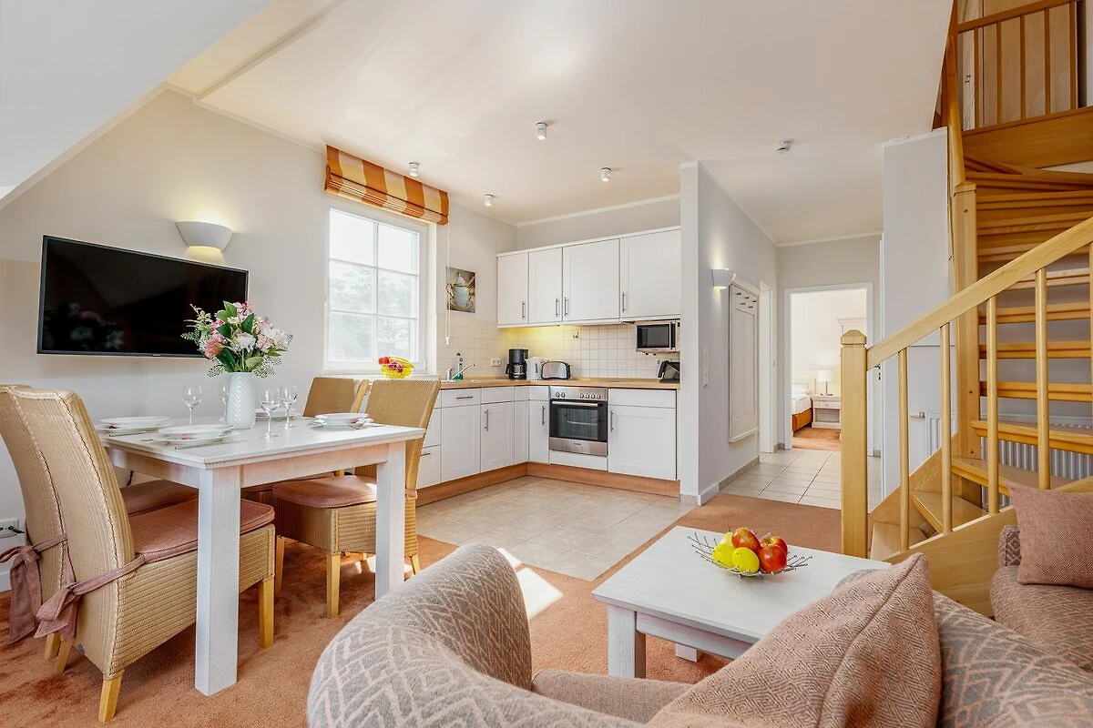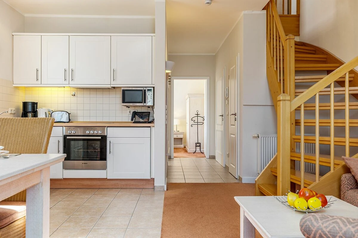 Das Apartement liegt im ersten und zweiten Stock eines Ferienkomplexes, der direkt am wunderbaren Ostseestrand erbaut wurde. Im offen gestalteten Wohn- und Essbereich erwartet Sie eine voll ausgestattete Küchenzeile mit viel Platz zum Kochen und Genießen. Zudem finden Sie hier einen großzügigen Esstisch und eine gemütliche Sofaecke mit einem zusätzlichem Sessel. Bereits vom Esstisch aus, können Sie den Blick zum Strand genießen. Von hier aus betreten Sie durch Flügeltüren auch den Balkon der Wohnung.