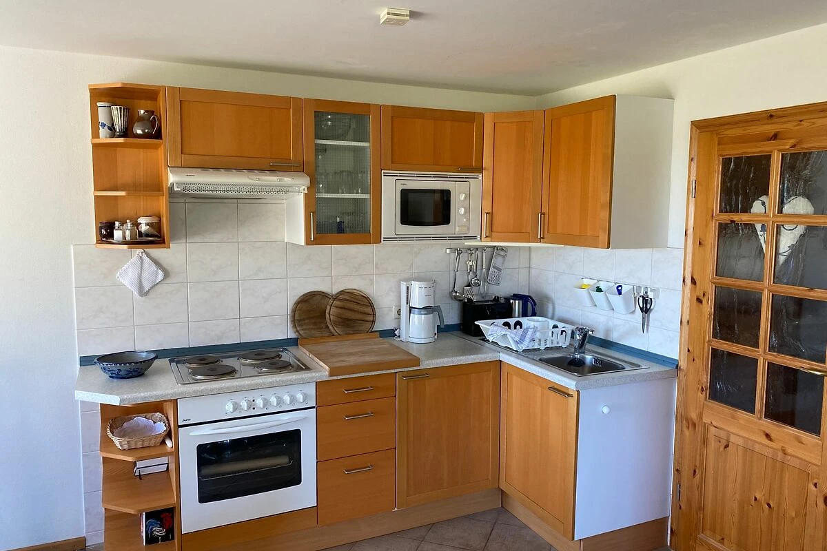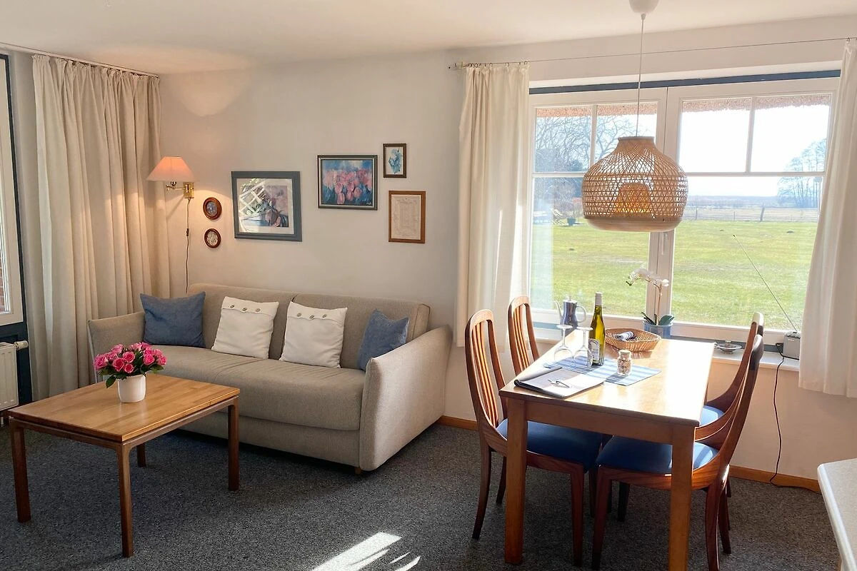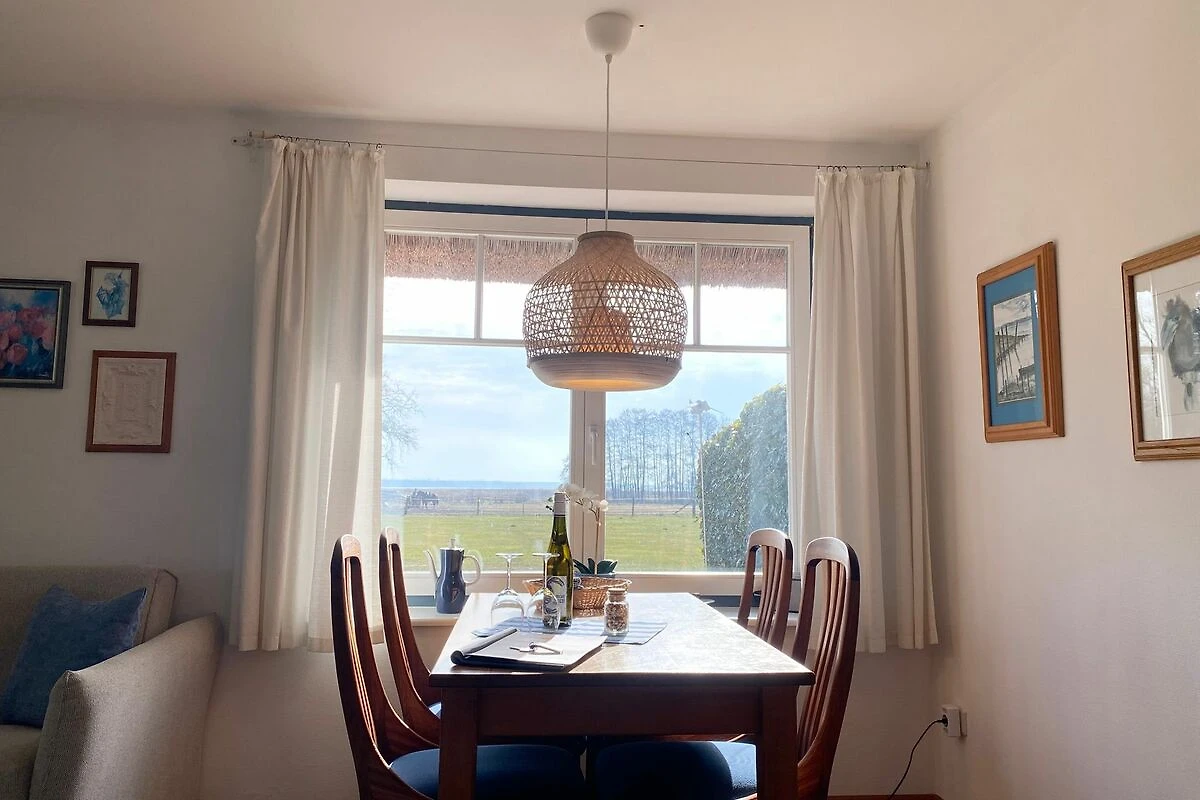 Die Küche bietet alles, was Sie für eine genussvolle Selbstversorgung brauchen und das Tageslichtbad mit Dusche machen Ihren Aufenthalt besonders komfortabel. Die Fenster eröffnen den Blick auf die ruhige Boddenlandschaft und erfüllen die Räume mit natürlichem Licht.