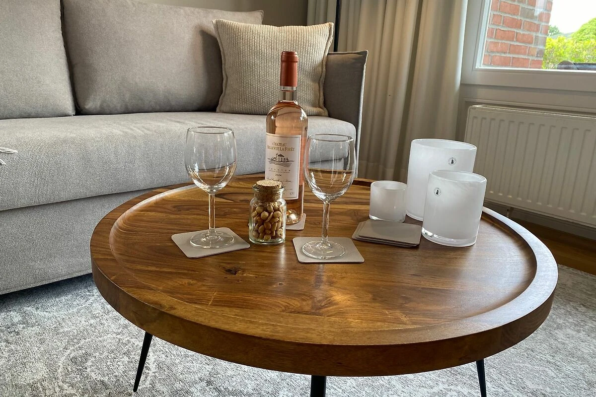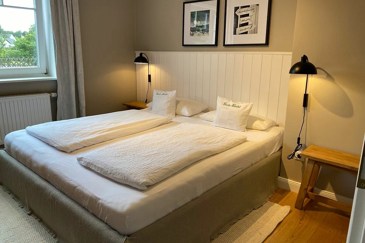 Die kompakte, hochwertige Küche fügt sich nahtlos ins Design ein und bietet alles, was man für unkomplizierte Urlaubstage benötigt. Das Schlafzimmer sorgt mit stilvoller Einrichtung und ausgewählten Materialien für erholsame Nächte.