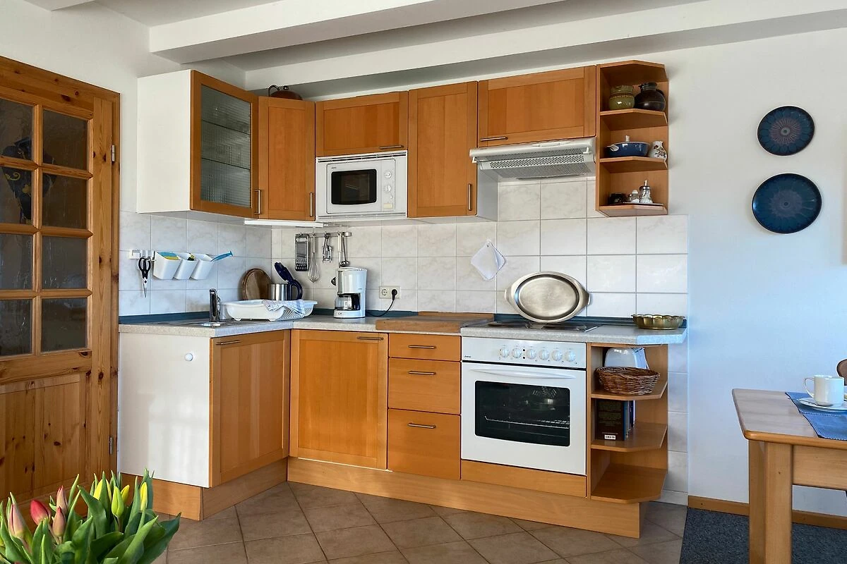 Die gut ausgestattete Küche lädt zu gemeinsamen Kochmomenten ein, und das moderne Bad mit Dusche sorgt für Komfort nach einem erlebnisreichen Tag am Wasser.