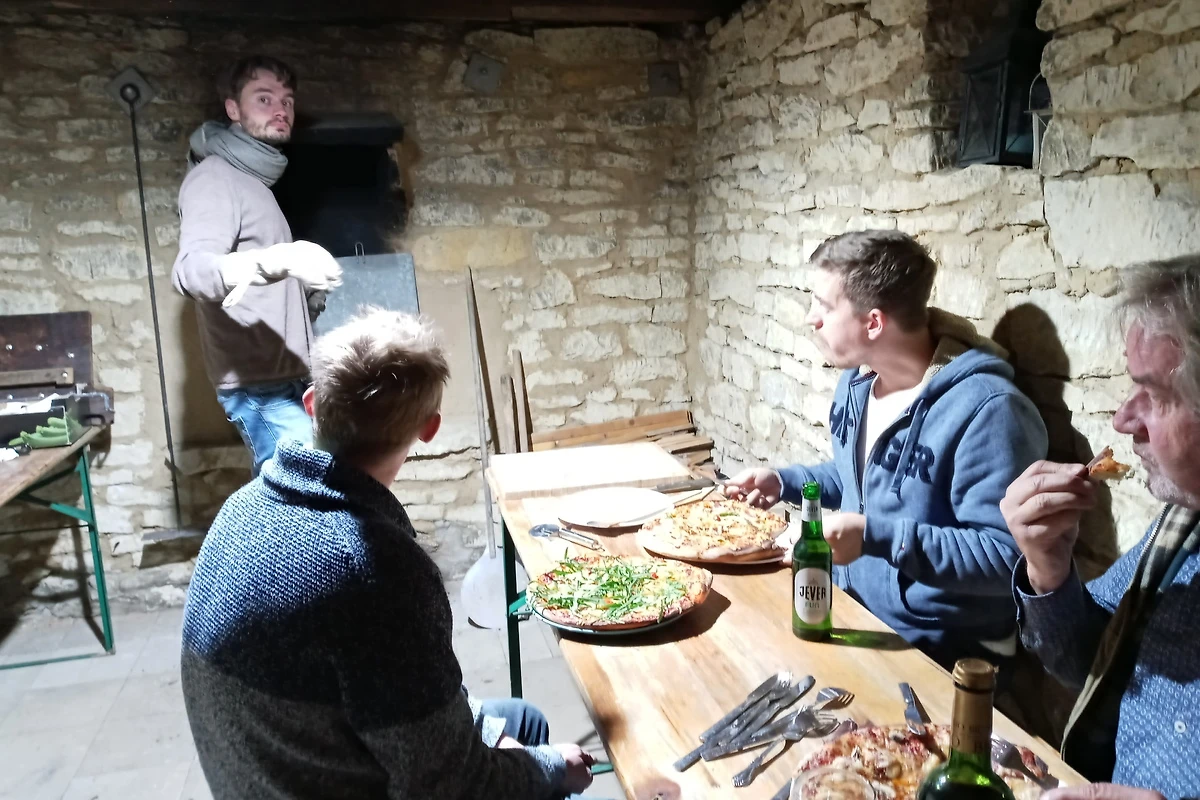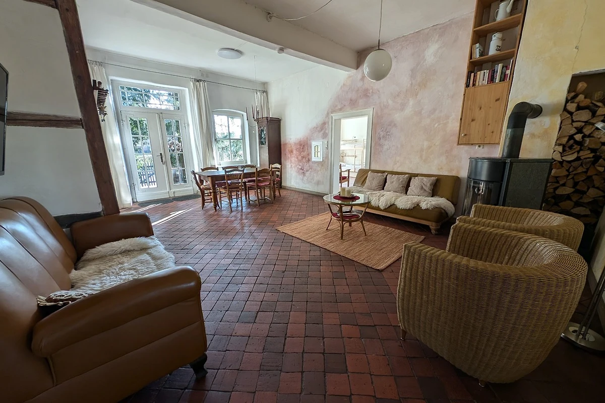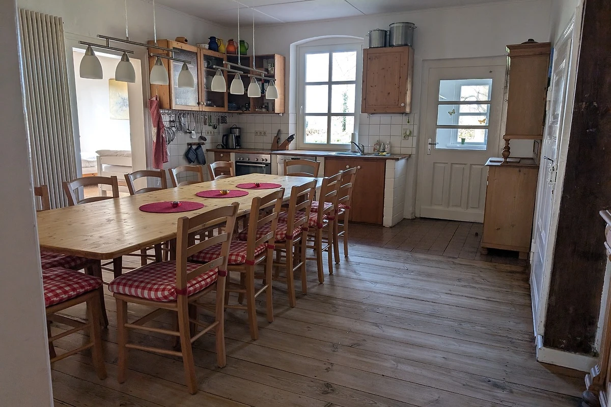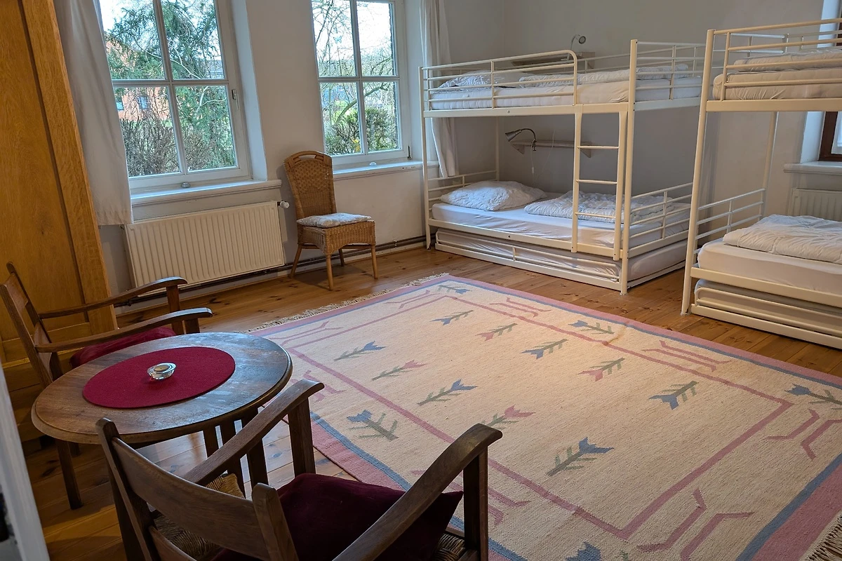 Willkommen im Gästehof Brockum – Ihrem großzügigen Feriendomizil für bis zu 18 Gäste auf 215 m² Wohnfläche. Hier finden große Familien, Freundesgruppen oder Monteure viel Platz und Komfort. Fünf Schlafzimmer und zwei Badezimmer sorgen für entspannte Nächte und einen erholsamen Start in den Tag. Im Gruppenraum steht eine Tischtennisplatte bereit. 2 weitere Schlafmöglichkeiten sind ebenfalls vorhanden. Die Ferienwohnung ist hundefreundlich, sodass auch Ihr Vierbeiner willkommen ist. Im weitläufigen Garten mit Terrasse und Grill und einem historischen Backhaus mit Steinbackofen genießen Sie gesellige Stunden, während Kinder sicher spielen können. Die Küche ist mit einer Küchenzeile, Cerankochfeld, Backofen, Geschirrspüler, Wasserkocher, Kaffeemaschine, Toaster und ausreichend Geschirr bestens ausgestattet. Kühlschrank, Gefrierschrank und Mikrowelle finden Sie in der Vorratskammer neben der Küche. Für gemütliche Abende sorgt der Kamin, während TV, HiFi-Anlage, Radio, Fernseher und WLAN für Unterhaltung sorgen. Zwei Kinderreisebetten und 2 Hochstühle stehen bereit, ebenso wie Föhn, Waschmaschine und Staubsauger. Ein Parkplatz sowie eine Wallbox für E-Autos sind vorhanden. Die Wohnung ist nur für Nichtraucher geeignet und bietet ein allergikerfreundliches Umfeld. Auch für längere Aufenthalte ist der Gästehof eine ideale Wahl.
