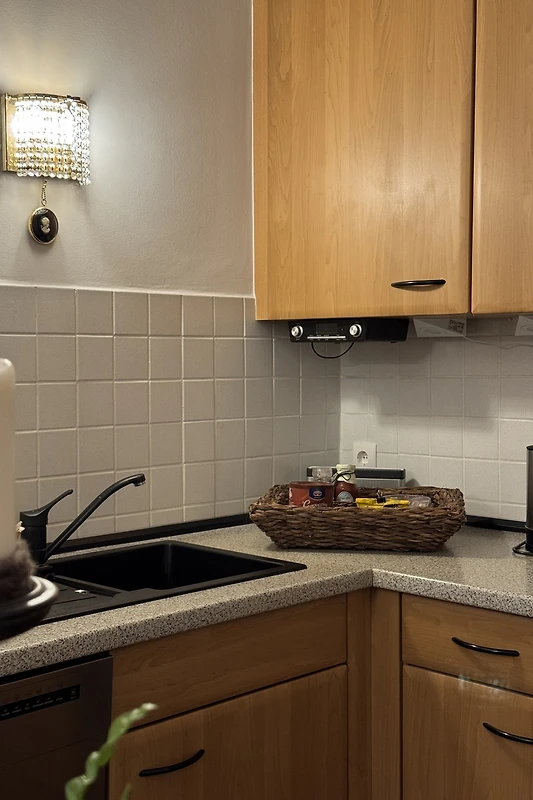 Die voll ausgestattete Küchenzeile mit Spülmaschine, Wasserkocher und Kaffeemaschine macht die Selbstversorgung zum Vergnügen. Genießen Sie gemeinsame Mahlzeiten im einladenden Essbereich. Im Schlafzimmer erwartet Sie ein komfortables Bett für erholsamen Schlaf, das Bad ist mit Föhn und moderner Ausstattung versehen.