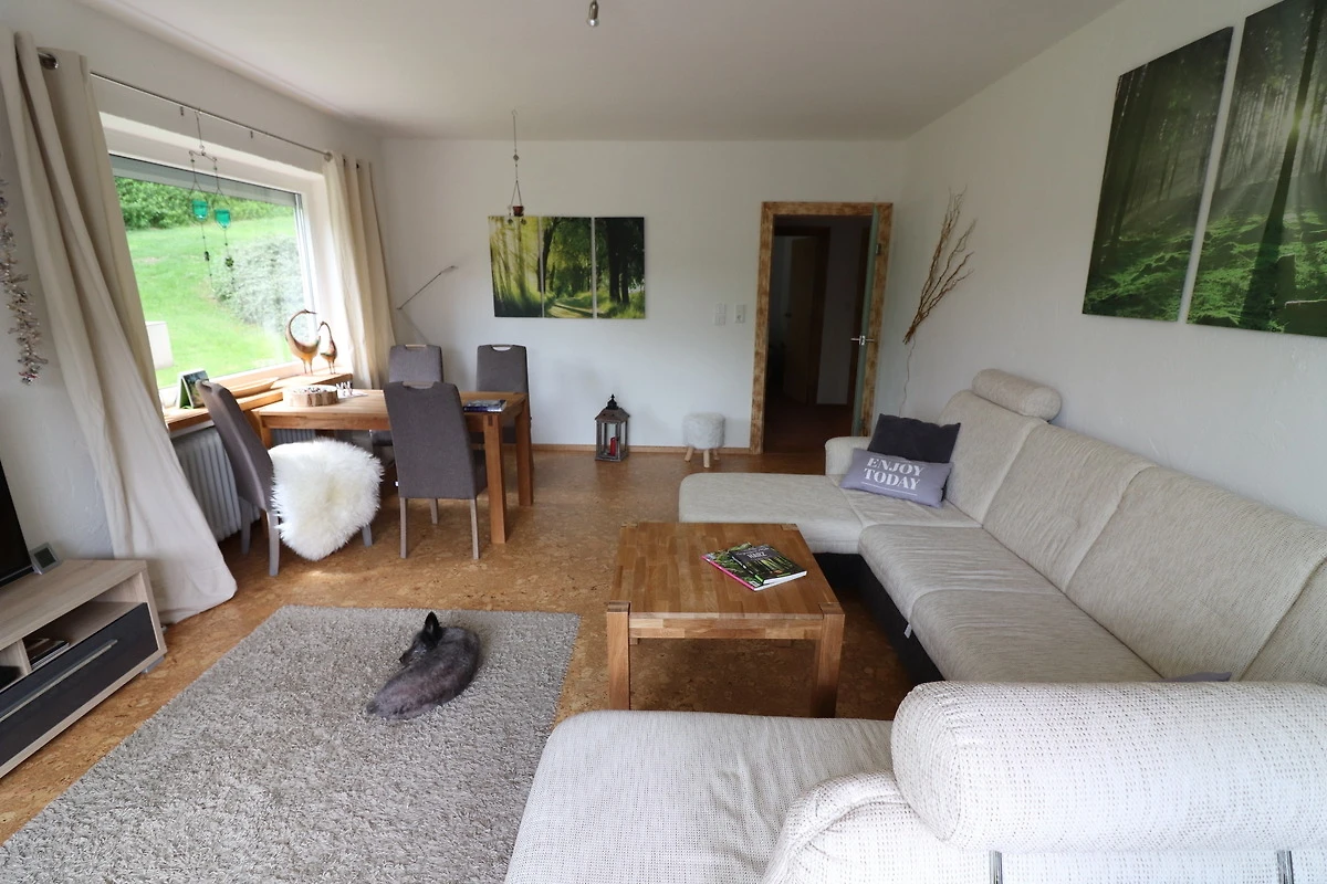 Wir haben die Wohnung im Ortsteil Bockswiese saniert und neu eingerichtet. Nun geniessen Sie gern die vollausgestattete Küche, das neue Bad und das grosse Wohnzimmer mit Flachbildfernseher, WLAN oder ein gutes Buch. Neue Gesellschaftsspiele liegen bereit. Im Schlafzimmer erwartet Sie ein Vollholzbett mit hohem Einstieg und hochwertigen Matratzen. Die Terrasse bietet fast ganztags Sonne und einen herrlichen Blick über den Ort. Nachts erwartet Sie hier ein herrlicher Sternenhimmel.