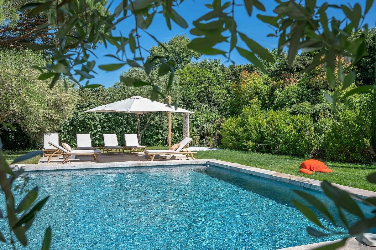 Draußen erwartet Sie das Highlight der Villa: ein privater Pool, ideal zum Abkühlen nach der Mittagssonne oder zum Entspannen mit Freunden bei einem kühlen Getränk. Eine schattige Terrasse lädt zu Grillabenden, gemütlichen Mahlzeiten oder ruhigen Nachmittagen unter Bäumen ein. Das umliegende Grün sorgt für eine friedliche, abgeschiedene Atmosphäre, obwohl Sie sich in der Nähe der Annehmlichkeiten des Ortes befinden.