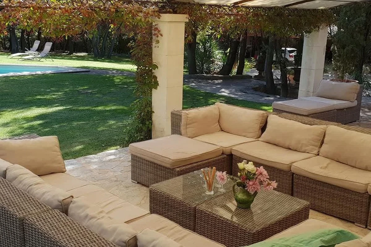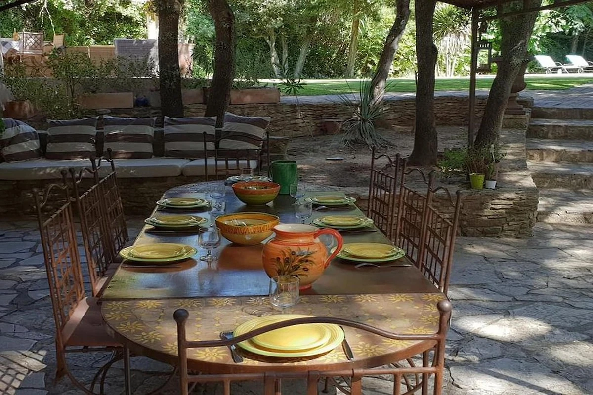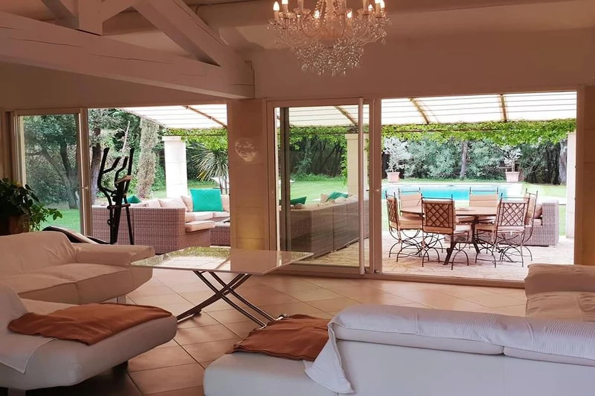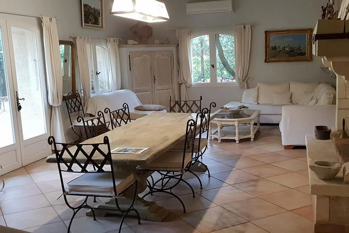 Küche und Hauswirtschaftsraum sind auf maximalen Wohnkomfort ausgelegt. Die separate, voll ausgestattete Küche bietet alle notwendigen Geräte – Backofen, Herd, Geschirrspüler, Gefrierschrank und Mikrowelle – und führt auf eine zweite Terrasse mit einer charmanten Pergola und einem Grill, ideal für laue Sommerabende unter dem Sternenhimmel. Für zusätzlichen Komfort sorgt ein separater Hauswirtschaftsraum mit zwei Waschmaschinen, einem Trockner und Bügelmöglichkeiten. Die Villa bietet auf beiden Etagen modernen Komfort mit Annehmlichkeiten wie Klimaanlage, Heizung, WLAN und Telefonanschluss. Das Anwesen ist umzäunt und verfügt über ein automatisches Einfahrtstor sowie private Parkplätze, darunter ein Carport im provenzalischen Stil für zwei Autos.