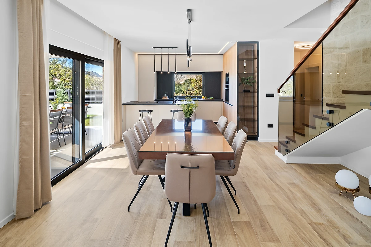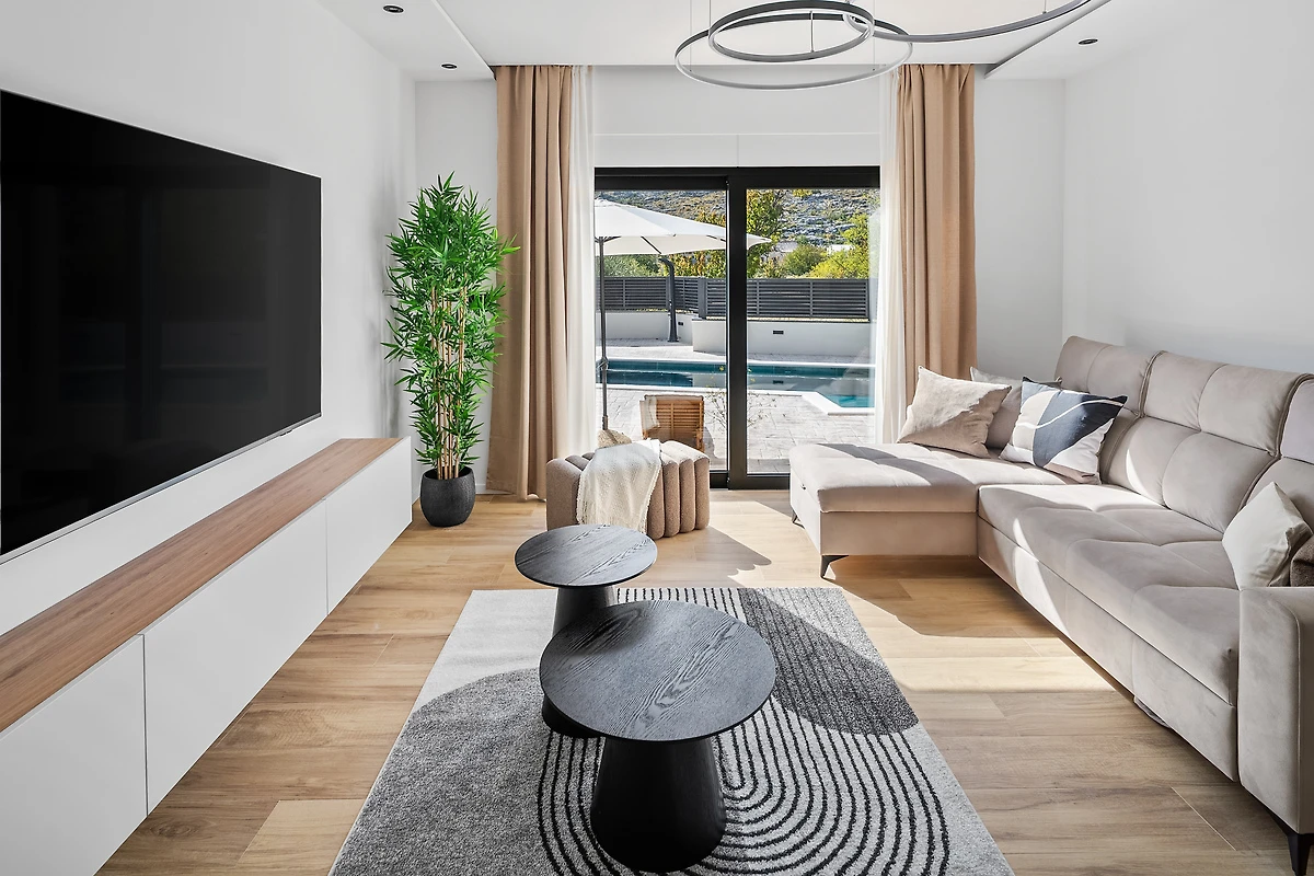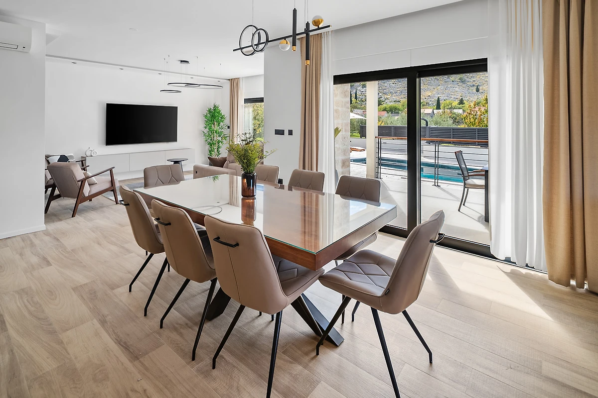 Im Ferienhaus Erholungsurlaub Srinjine erwartet Sie ein unvergesslicher Aufenthalt in der wunderschönen Region Split und Umgebung. Das großzügige Haus bietet auf 250 m² Platz für bis zu 10 Gäste und überzeugt mit einer einladenden Atmosphäre. Genießen Sie entspannte Stunden auf dem Balkon mit Blick auf die umliegende Landschaft oder im gepflegten Garten, der zum Verweilen einlädt. Der große Swimmingpool sorgt an warmen Tagen für Erfrischung und Spaß für die ganze Familie. Für Ihr Fahrzeug steht ein privater Parkplatz bereit.