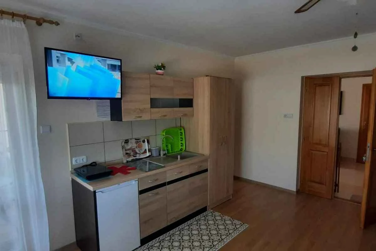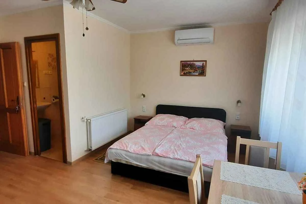Keszthely. Die Ferienwohnung befindet sich auf einem 150 qm grossen, geschlossenen Grundstück mit Wiese, Blumen und Bäumen, von einem Zaun begrenzt. Der Vermieter wohnt ständig in einem separaten Gebäude auf dem Grundstück. Die Zufahrt erfolgt über eine Nebenstrasse (asphaltiert). Parkplatz (für 1 Pkw) auf dem Grundstück.