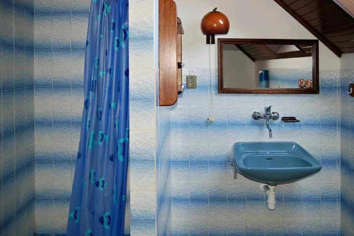 1. Etage: Schlafzimmer (12 qm) mit 1 Doppelbett (Queensize) und 1 Einzelbett. Schlafzimmer mit 2 Doppelbetten (Queensize) und 1 Einzelbett. Schlafzimmer mit 2 Doppelbetten (Queensize). Bad (8 qm) mit Badewanne, Dusche und WC.