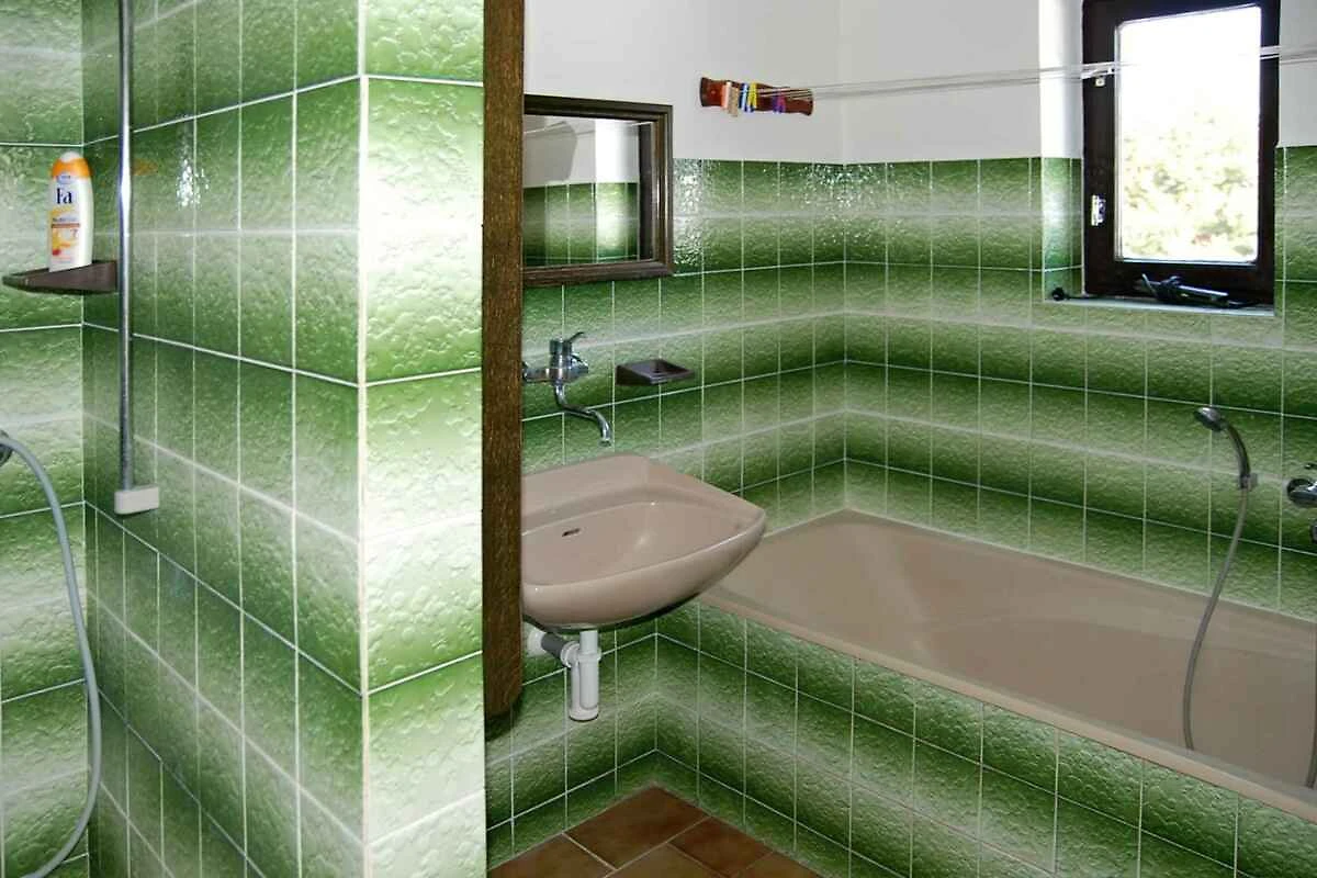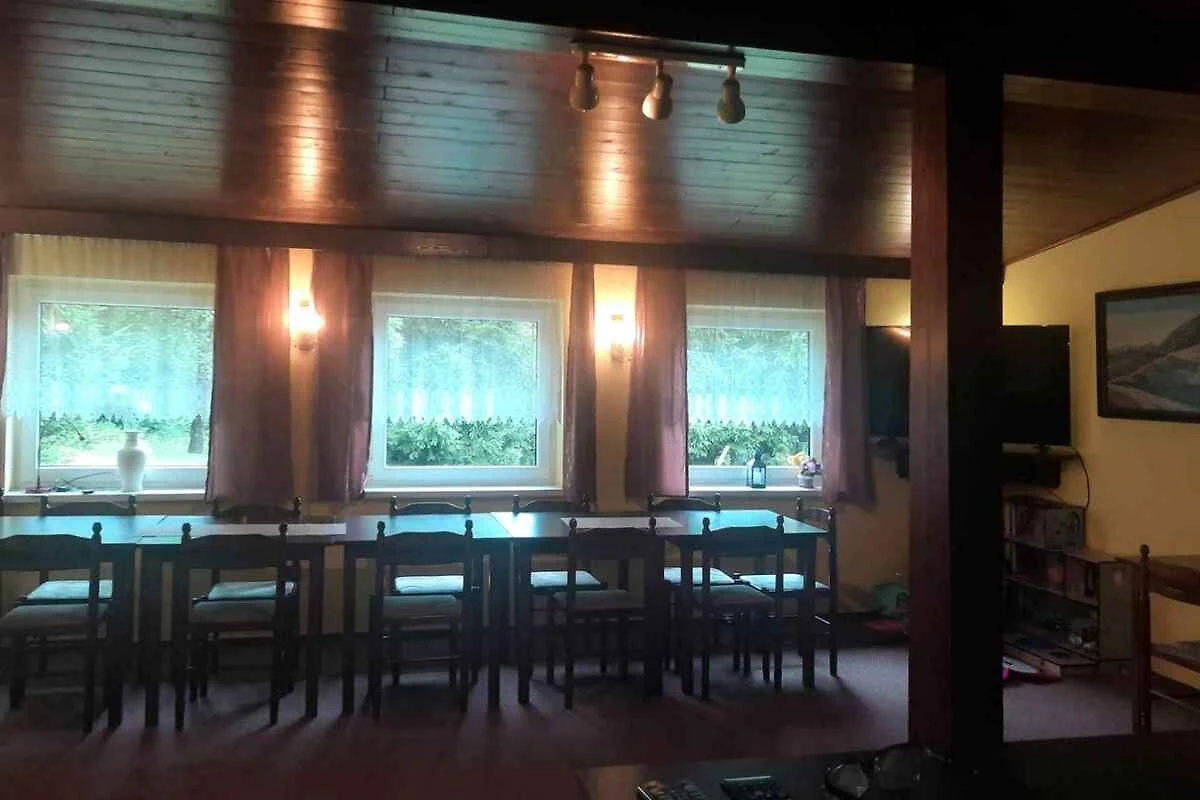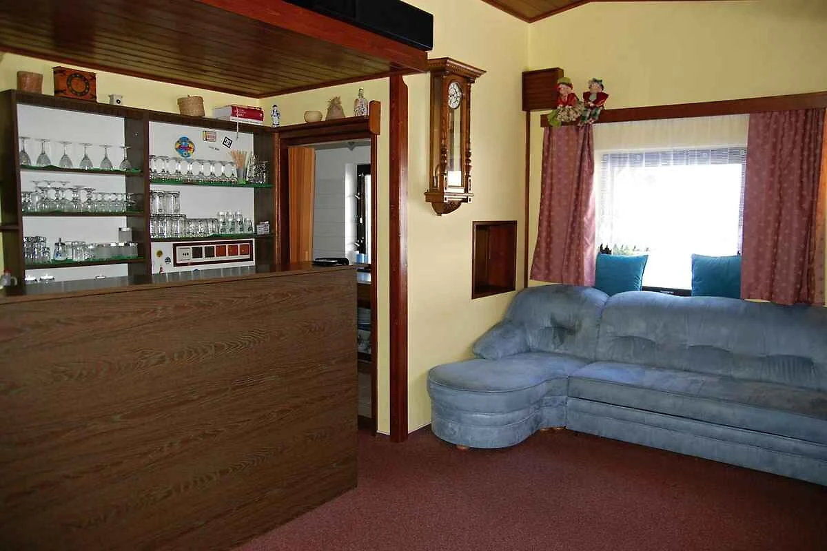Erdgeschoss: Aufenthaltsraum (80 qm) mit Sitzecke, TV, Essecke (19 Plätze), Zugang zur Terrasse und Posezení s barem. Schlafzimmer (12 qm) mit 1 Doppelbett (Queensize). Schlafzimmer (20 qm) mit 2 Doppelbetten (Queensize) und 1 Einzelbett. Küche (12 qm) mit Elektroherd (4 Platten), Backofen, Geschirrspüler, Kühlschrank (Eisfach), Kaffeemaschine und elektrischem Wasserkocher. Bad (6 qm) mit Badewanne, Dusche und WC. 2 separate WC jeweils (2 qm) mit WC.