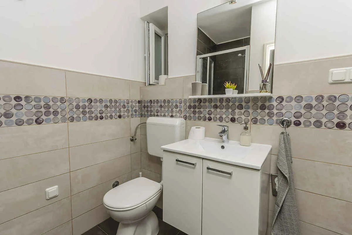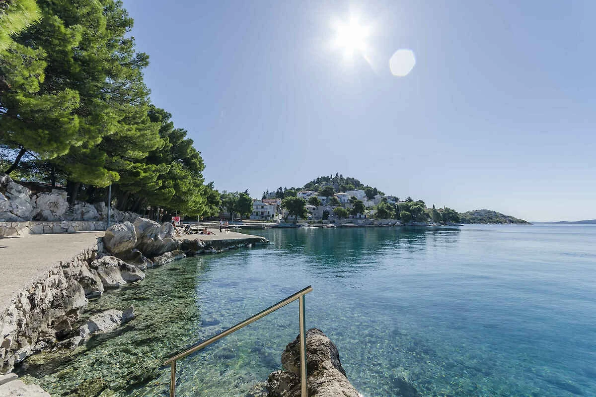 Einkauf 300 m, Restaurant 50 m, Ortszentrum 50 m. Die nächste Haltestelle für den öffentlichen Nahverkehr ist 300 m entfernt. Tribunj: Arzt 300 m und Apotheke 600 m. Diskothek in Vodice 3 km. Flughafen in Zadar 80 km. Hauptstrasse 3 km. Im Sommer: Adriatisches Meer 20 m in Tribunj (Strand 30 m in Tribunj mit Steinen und Felsen). Tribunj: Bootsverleih 100 m, Tauchen 200 m und Bootsanleger 600 m. Tennis in Vodice 3 km.
