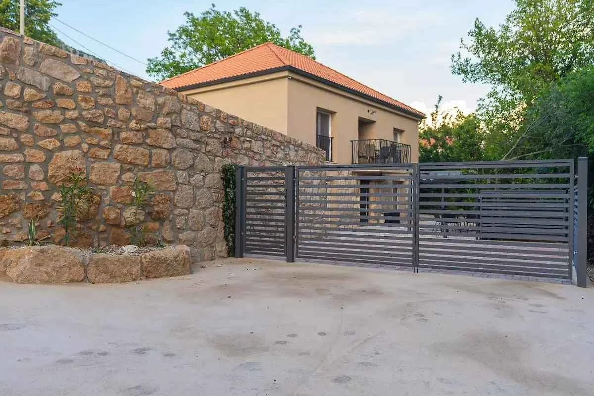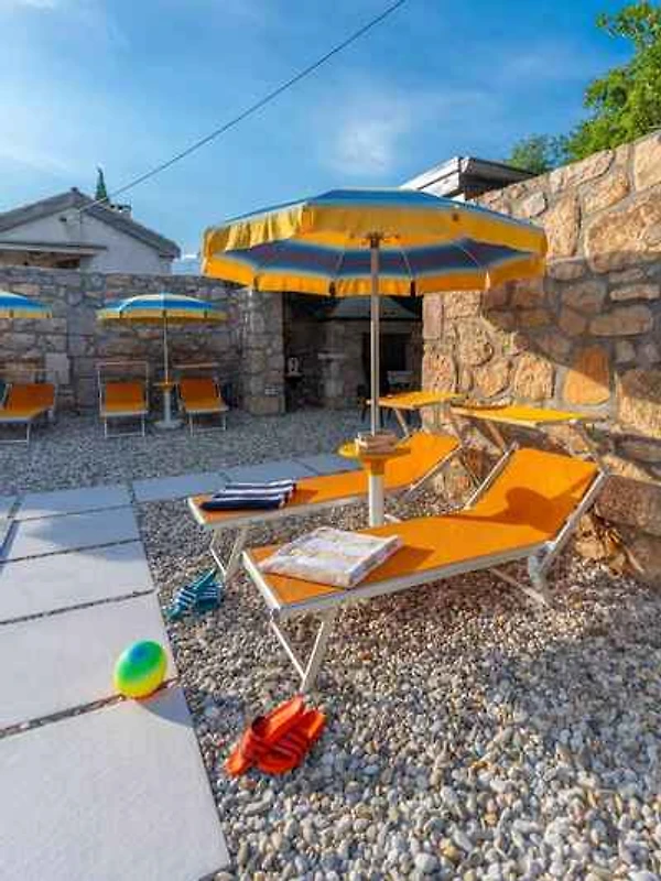 Grižane. Das Ferienhaus befindet sich auf einem geschlossenen Gartengrundstück. Parkplatz auf dem Grundstück.