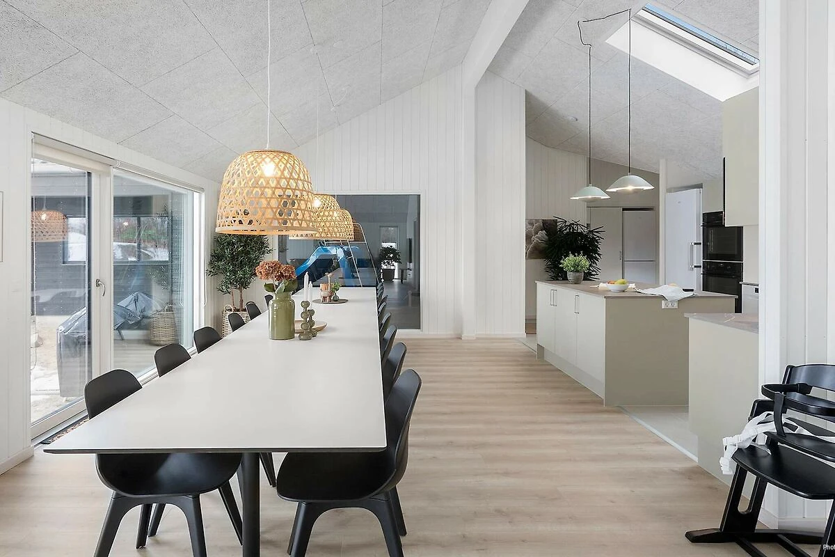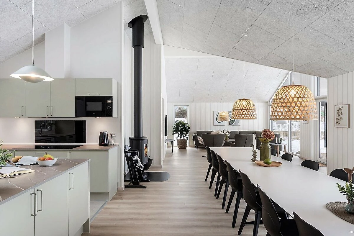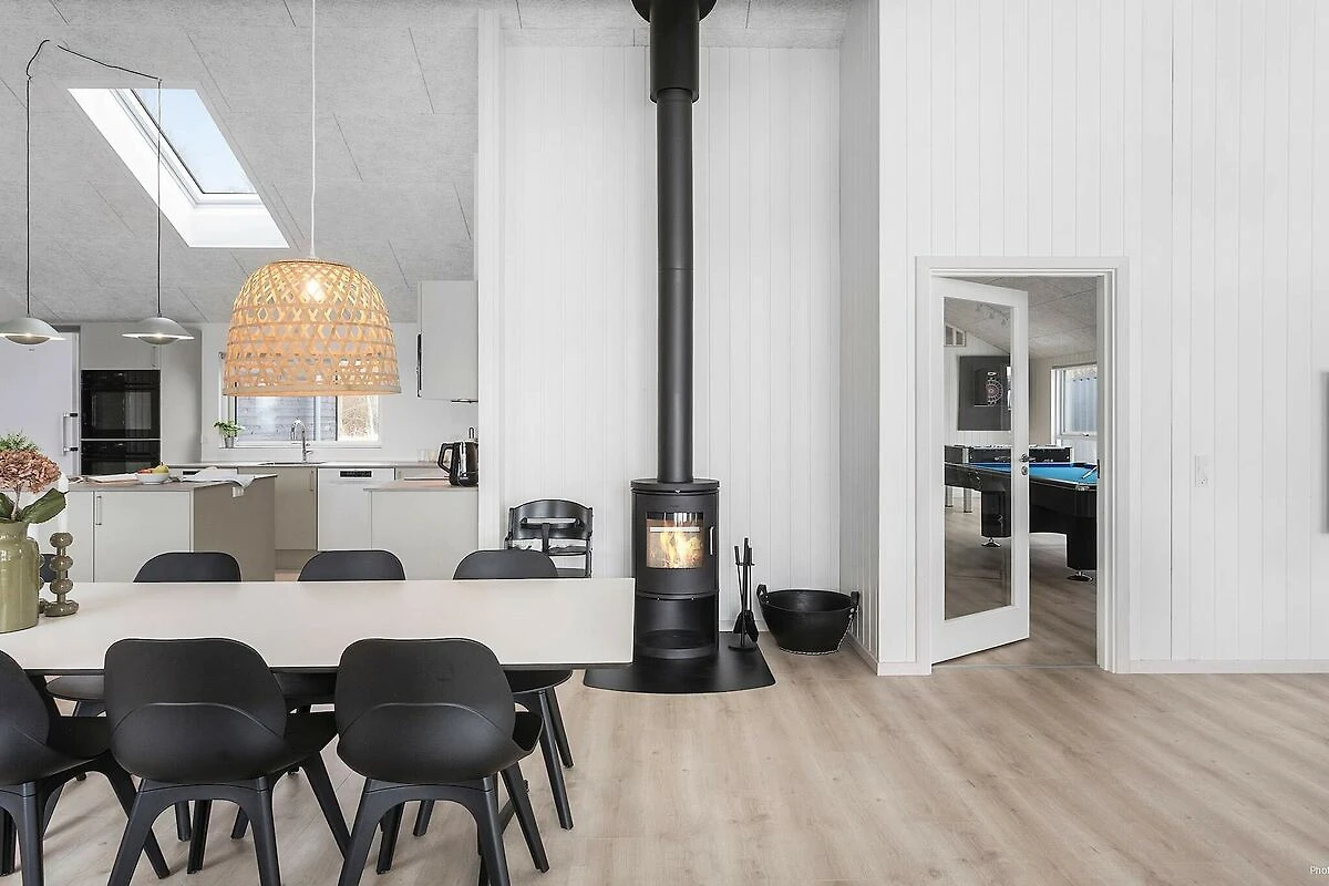Großzügiges Ferienhaus mit Pool in Marielyst – strandnah mit Pool, Whirlpool außen und Aktivitätsraum für den Freizeitspaß! Im beliebten Ferienort Marielyst erwartet Sie dieses geräumige Ferienhaus mit Pool. Es vereint Komfort, Unterhaltung und eine attraktive Lage in Strandnähe. Das Haus bietet Platz für bis zu 18 Personen und ist ideal für Familienurlaube und Aufenthalte mit Freunden – das ganze Jahr über. Urlaub mit Platz für alle: Das große Wohnzimmer ist der natürliche Treffpunkt des Hauses. Hier kann die ganze Gruppe am langen Esstisch gemeinsam essen, Spiele spielen oder in der Sofaecke vor dem Kaminofen entspannen. Die gut ausgestattete XL-Küche verfügt über zwei Backöfen und zwei Geschirrspüler, sodass Kochen auch in größerer Runde problemlos möglich ist. Aktivitäten für die ganze Familie: Im Aktivitätsraum des Hauses können Sie Billard, Tischtennis, Tischfußball oder Darts spielen. Außerdem gibt es eine gemütliche Bar und bequeme Sitzgelegenheiten – ideal für gesellige Abende und geselliges Beisammensein nach einem erlebnisreichen Tag. Pool, Whirlpool und Sauna – Badespaß und Wellness für Jung und Alt: Der Poolbereich wird schnell zum beliebten Treffpunkt. Hier können Kinder auf der kleinen Rutsche vergnügen, während Erwachsene schwimmen oder am Pool entspannen. Draußen erwarten Sie ein Whirlpool und eine Sauna, wo Sie in ruhiger Umgebung die Seele baumeln lassen können. Leben im Freien und Gemütlichkeit auf der Terrasse: Die große Terrasse ist mit Gartenmöbeln, Sonnenliegen und einem Grill ausgestattet, sodass Sie lange Sommerabende unter freiem Himmel genießen können. Im Garten gibt es Schaukeln für die Kinder, während Erwachsene die Urlaubsatmosphäre genießen können. Viel Platz und moderner Komfort: Das Ferienhaus verfügt über 7 Schlafzimmer und 4 zusätzliche Schlafplätze im Dachgeschoss – ideal für Kinder und Jugendliche. Die drei Badezimmer sorgen dafür, dass jeder gut in den Tag startet, auch wenn das Haus voll belegt ist. Familienfreundlicher Bereich: In unmittelbarer Nähe befinden sich ein Mehrzweckplatz und ein gemeinsamer Spielplatz, wo Kinder und Erwachsene zusammen spielen und toben können. Marielyst – ein Klassiker an der dänischen Südküste: Marielyst ist bekannt für seinen breiten, kinderfreundlichen Strand, das gemütliche Ortsleben mit Cafés, Geschäften und Eisdielen sowie die entspannte Atmosphäre das ganze Jahr über. Hier finden Sie die besten Voraussetzungen für einen Urlaub, der Strandleben, Aktivitäten und pure Erholung vereint. BITTE BEACHTEN: Die bisher gezeigten Fotos sind lediglich nur Modellfotos, da sich das Haus derzeit noch im Bau befindet. Das Endergebnis und die Außenbereiche können daher abweichen. Das neue Ferienhausgebiet ist derzeit im Aufbau, daher kann es zeitweise zu Baulärm kommen. Die Kaution ist vor der Anreise online zu entrichten. Sie deckt den Verbrauch im Haus sowie eventuelle Schäden ab. Keine Vermietung an Jugendgruppen erwünscht.