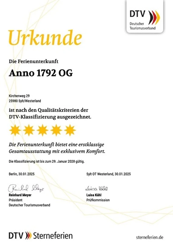 «Suite Anno 1792-OG» erreicht eine Urlauberbewertung von 5 (Bewertungsskala: 1 bis 5) bei 2 abgegebenen Bewertungen.