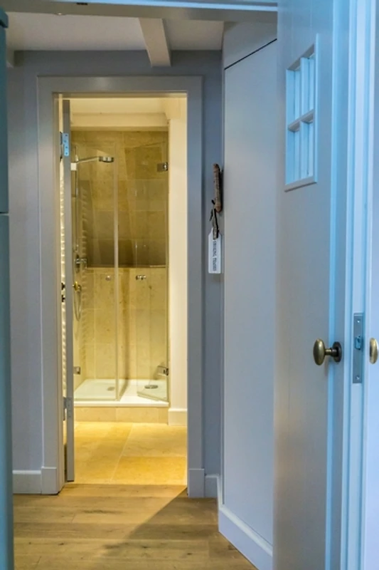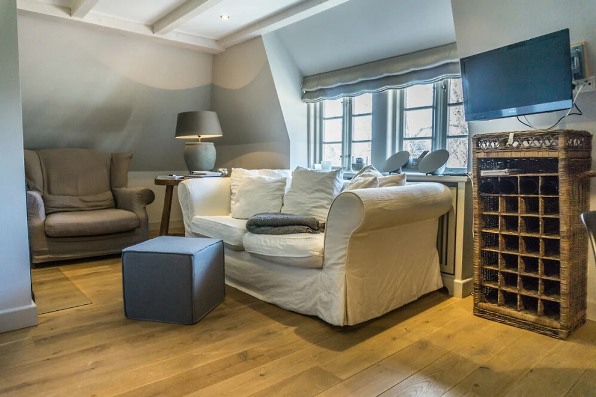 Die Suite ANNO 1792-OG liegt im Obergeschoss des Haupthauses des Anwesens. Auf der linkenSeite der Suite mit Blick in den Garten liegt das anheimelnde Wohnzimmer mit stilvoller offener Küche und dem Esstisch. Das beige Leinensofa und der grosse Sessel sind ideal für kuschelige Stunden vor dem Kamin. Auf der rechten Seite befinden sich die beiden kuscheligen Schafzimmer mit edlen Einbauschränken. Dazu gehören zwei stilvolle Duschbäder (davon eins mit zusätzlicher Badewanne). Zudem steht Ihnen ein separater Terrassenbereich (Süd-Ost-Ausrichtung) mit Teakholzmöbeln zur Verfügung.