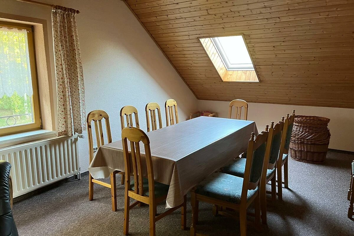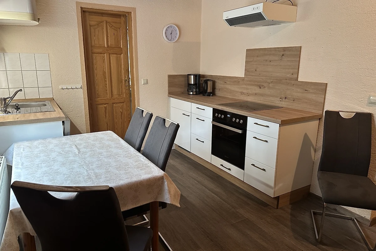 Das großzügige Haus bietet auf 160 m² viel Raum für bis zu 12 Gäste. Fünf Schlafzimmer und vier Badezimmer sorgen für Privatsphäre und Komfort – ideal für Familien, Freunde oder auch Monteure. Die zwei voll ausgestatteten Küchenzeilen mit Geschirrspüler, Elektroherd und Kaffeemaschine machen gemeinsames Kochen zum Vergnügen. Für entspannte Mahlzeiten steht in der oberen Etage ein großer Esstisch bereit.