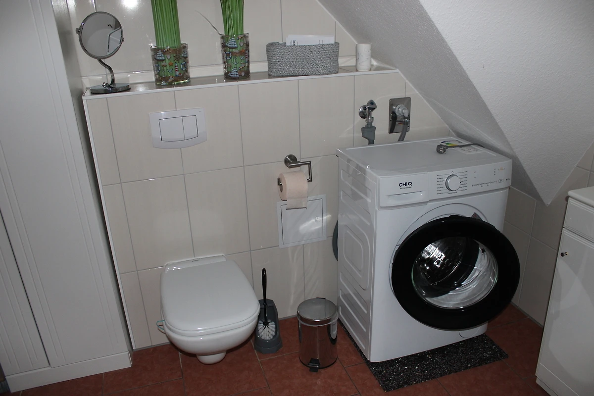 Die voll ausgestattete Küche verfügt über eine Küchenzeile, Geschirrspüler, Mikrowelle, Wasserkocher, Eierkocher und Kaffeemaschine – perfekt für gesellige Kochabende. Der Wohnbereich lädt mit TV und kostenlosem WLAN zu gemütlichen Stunden ein. Für Familien stehen ein Kinderbett und ein Hochstuhl bereit, sodass auch die Kleinsten bestens versorgt sind. Nach einem Tag am nahen Sandstrand oder einer Fahrradtour mit den bereitgestellten zwei Fahrrädern können Sie Ihre Wäsche bequem in der Waschmaschine reinigen.