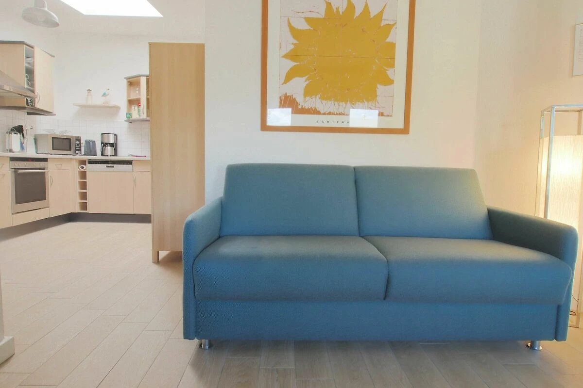 Im offenen Wohn- und Essbereich finden Sie eine voll ausgestattete Küche, einen Esstisch sowie ein gemütliches Sofa mit TV – ideal für gemeinsame Abende. Das Sofa kann bei Bedarf zur Schlafgelegenheit für zwei weitere Personen umfunktioniert werden.