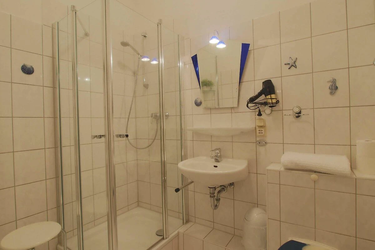 Das moderne Badezimmer verfügt über eine Dusche und bietet alles für Ihren Komfort.