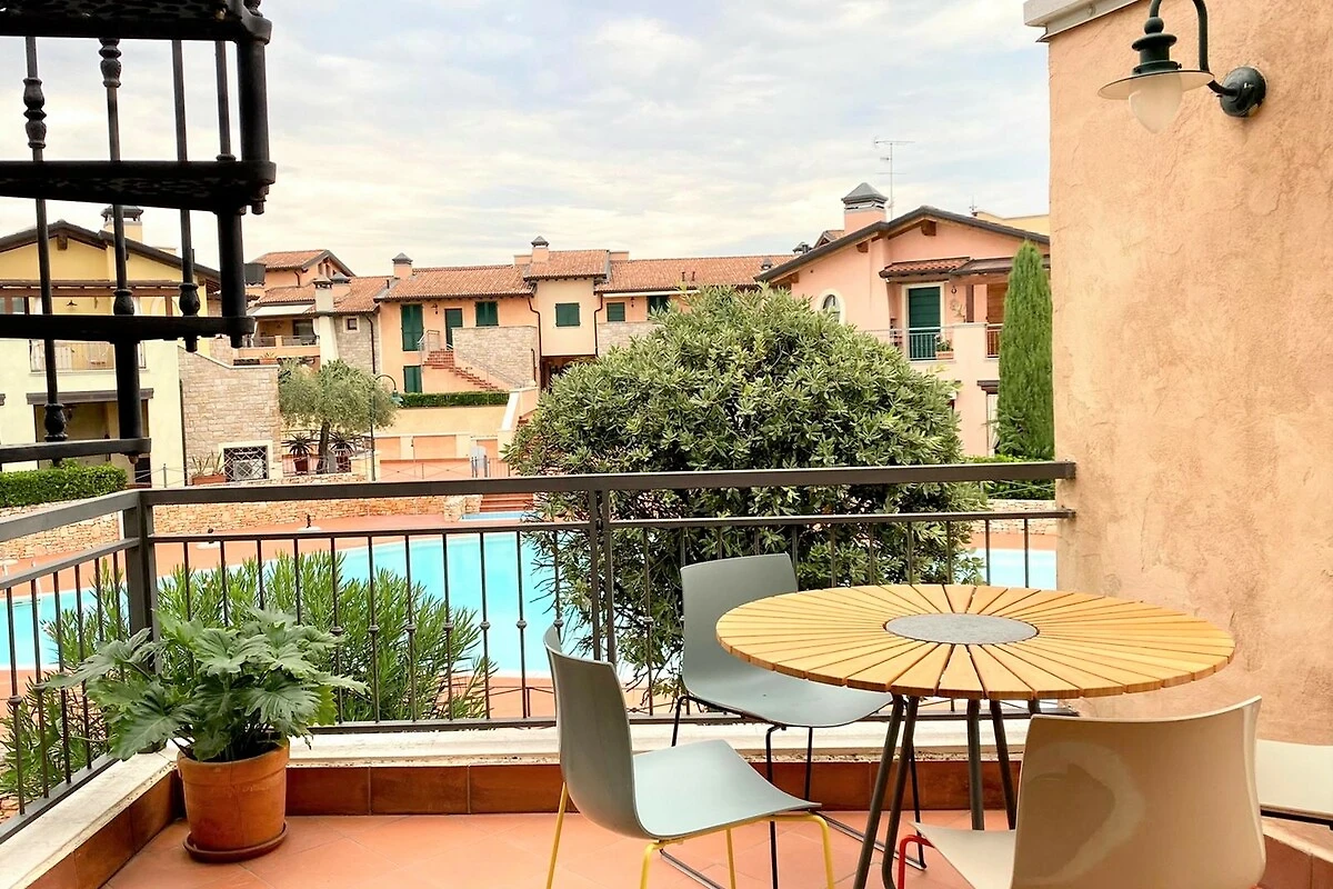 Die hochwertig und komplett renovierte Ferienwohnung 'Vicino di Riva' befindet sich in der sehr gepflegten Anlage "Borgo La Rocca di Garda Resort Village" in Manerba del Garda, im Südosten des Gardasees