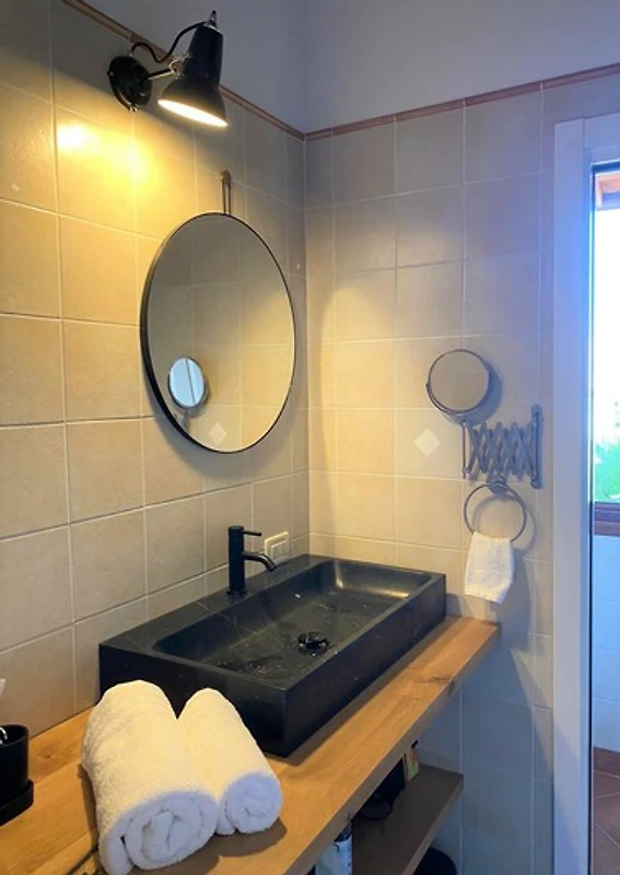 Über eine Wendeltreppe erreichen Sie die Dachterrasse, welche eine schöne Rundumsicht bietet, wie z. B., die Ausläufer der Alpen sowie Manerba mit der Kirche Santa Maria Assunta. Genießen Sie hier einen Sun Downer und Ihre absolute Privatsphäre.
