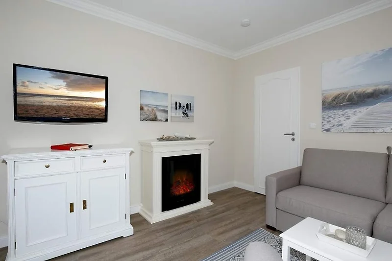 Diese charmante 2-Zimmer-Nichtraucher-Ferienwohnung mit ca. 37 qm Wohnfläche im Hochparterre auf der Süd-Ostseite ist ideal für maximal 2 Personen. Im hellen Wohnzimmer finden Sie eine komfortable Schlafcouch (1,40 x 1,80 m), einen gemütlichen Sessel mit passendem Fusshocker sowie einen separaten Essplatz. Für Ihre Unterhaltung sorgen ein Radio/CD-Player, Kabel-TV und ein stimmungsvoller Elektrokamin. Der angrenzende Süd-Ostbalkon lädt dazu ein, die frische Seeluft zu geniessen.