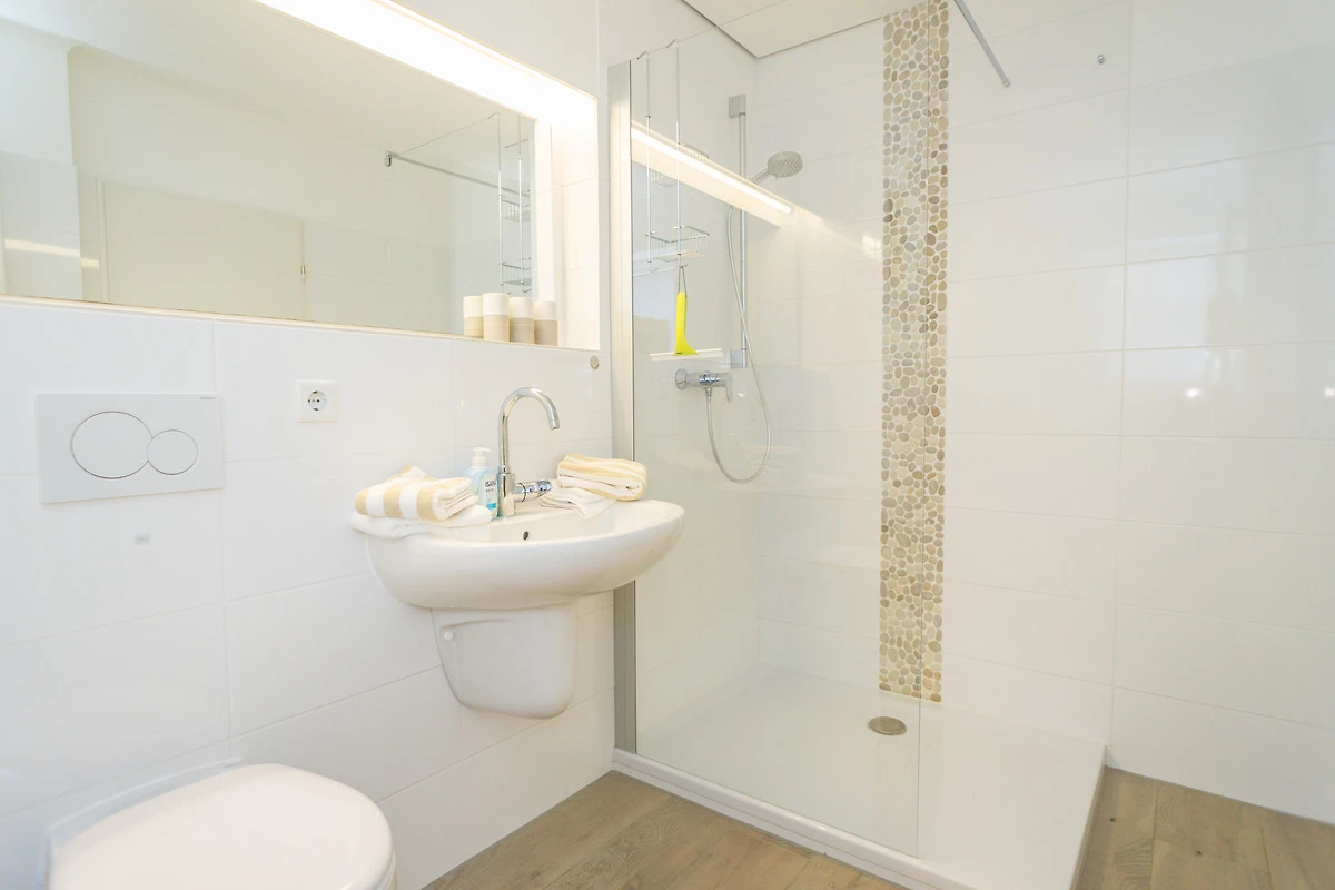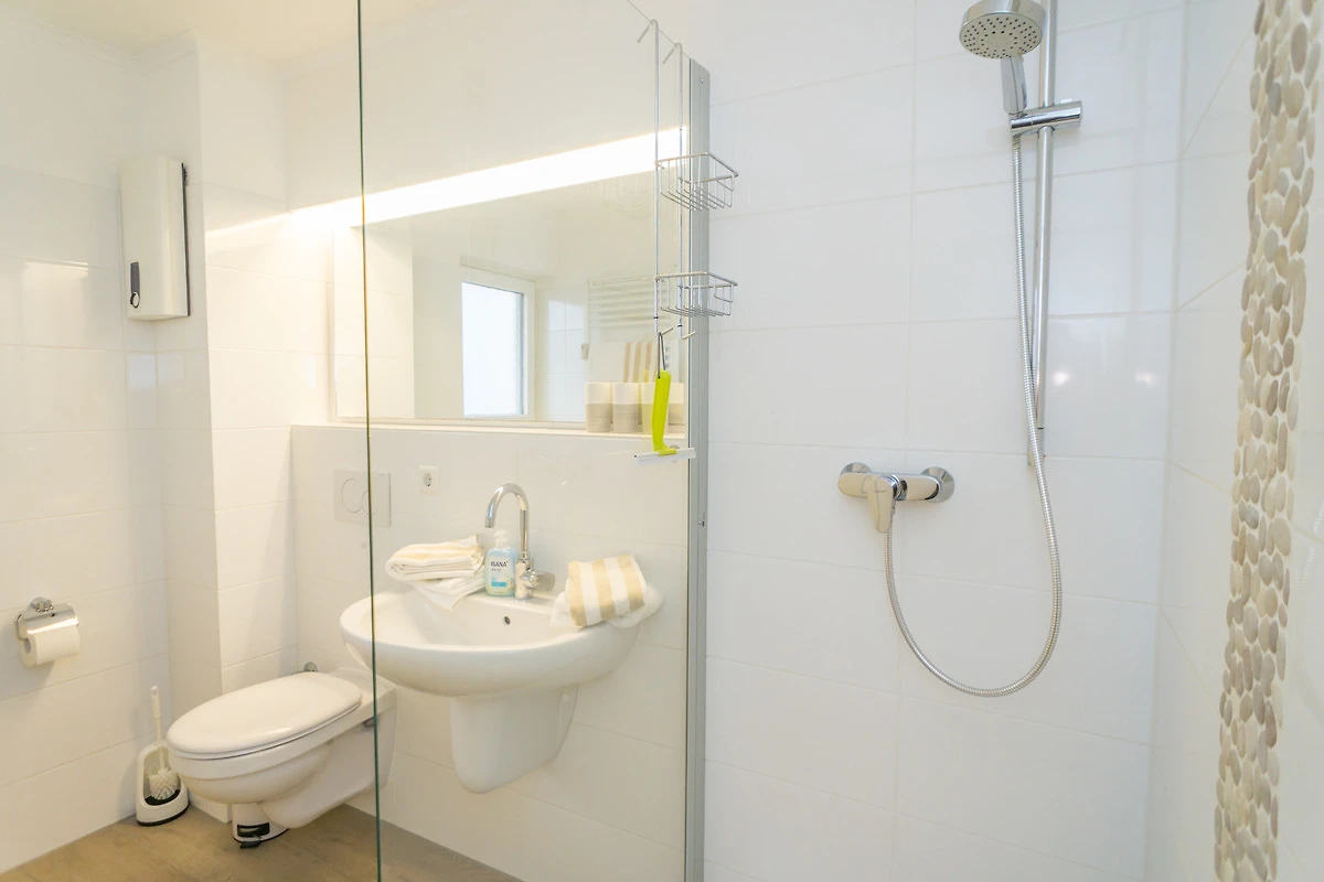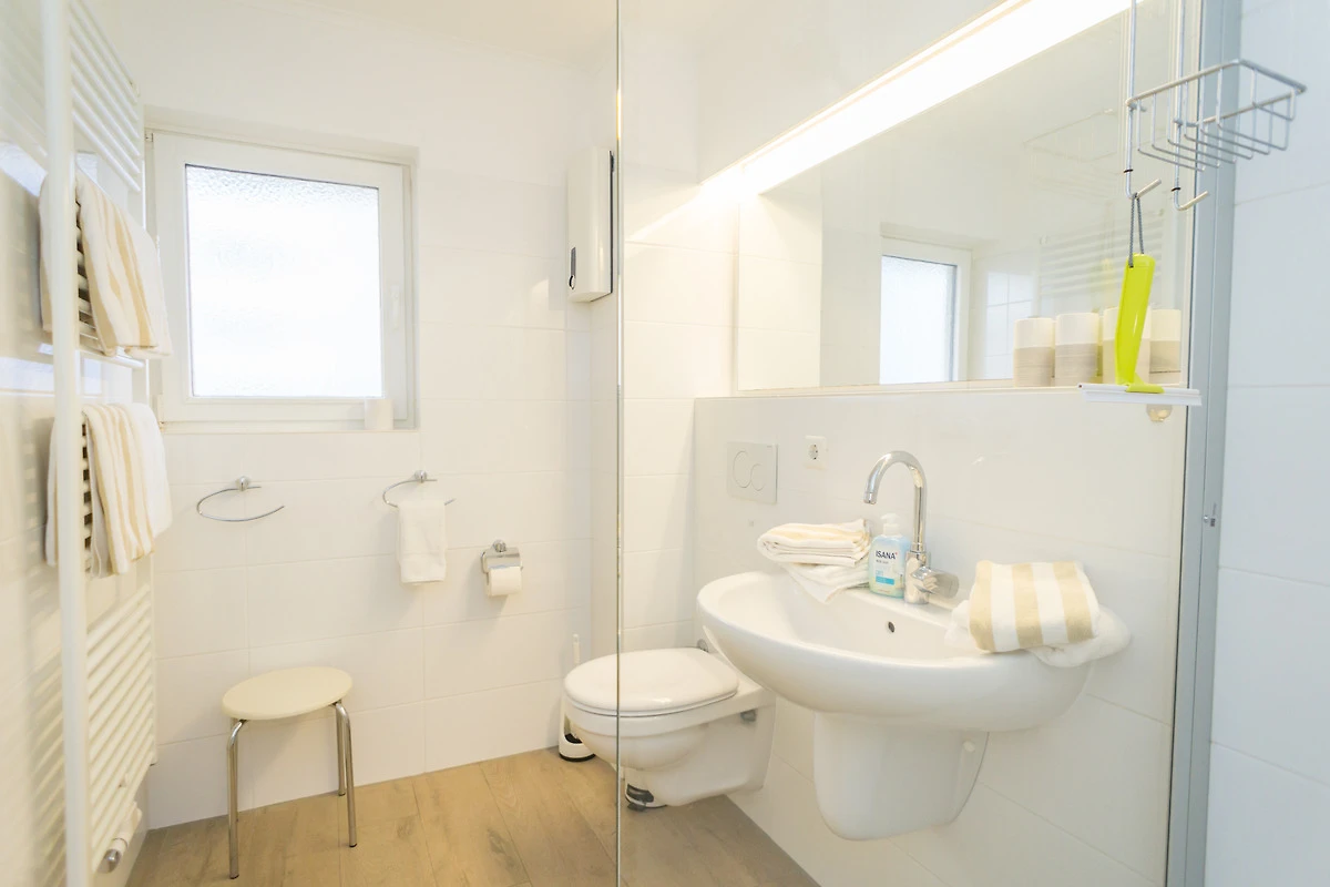 Das Duschbad/WC mit Fenster ist perfekt für einen Start in einen entspannten Urlaubstag.