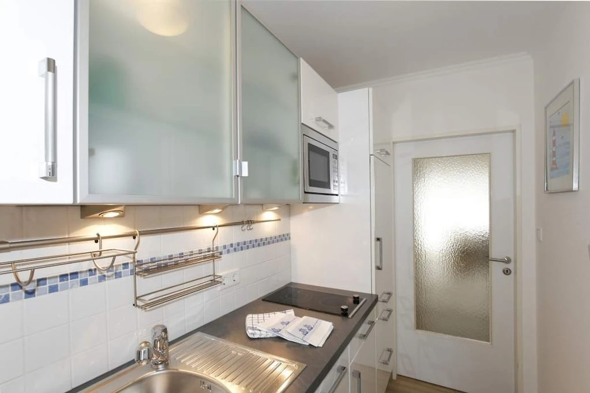 Die neue Küchenzeile hat einen Geschirrspüler, ein 2-Platten-Ceranfeld, eine Mikrowelle und einen Kühlschrank mit 3-Sterne-Gefrierfach. Kaffeemaschine, Wasserkocher und Toaster gehören zur Grundausstattung.