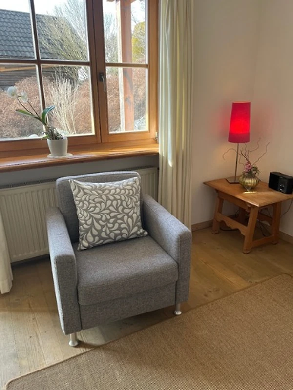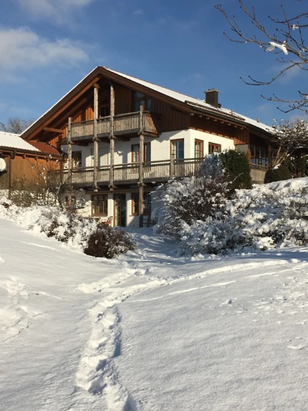 Die Ferienwohnung liegt in unserem Einfamlienhaus und verfügt über einen eigenen Eingang, der über eine Aussentreppe führt.