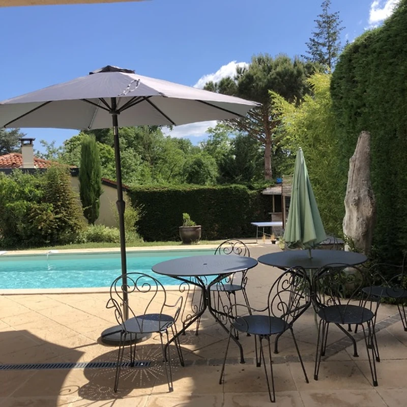 Genießen Sie die Sonne auf der großen Terrasse oder entspannen Sie im gepflegten Garten mit Rasen und schattigen Sitzplätzen. Ein privater Swimmingpool sorgt für Erfrischung an warmen Tagen. Für gesellige Abende steht Ihnen ein BBQ-Grill zur Verfügung. Die Unterkunft ist ausschließlich für Nichtraucher bestimmt und bietet ein allergikerfreundliches Umfeld – ideal für Familien und Erholungssuchende. Langzeitaufenthalte sind möglich.