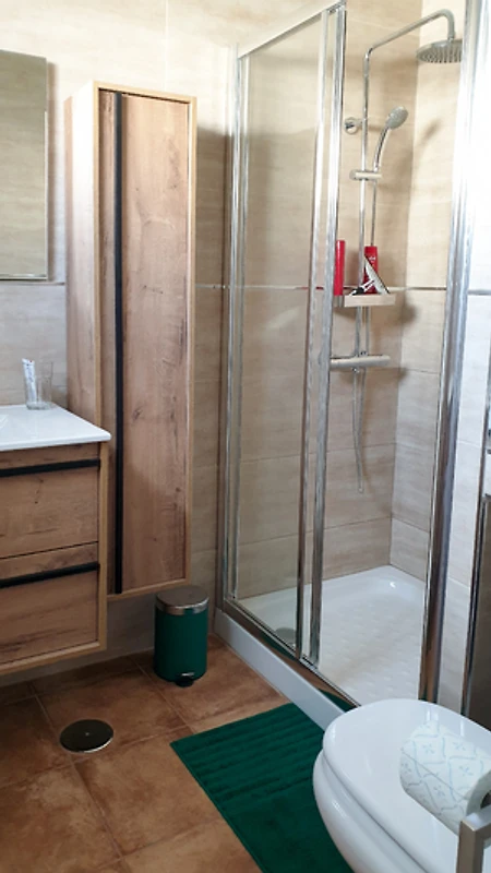 Schlafzimmer 2 bietet 2 Einzelbetten, die auch zu einem Doppelbett zusammen geschoben werden können, mit einem Bad ensuite - das große Bad befindet sich im Eingangsbereich. Beide neu renovierten Bäder verfügen über eine Regendusche.