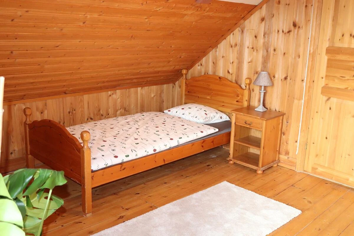 Das Haus ist ideal für Familien, Paare oder kleine Gruppen. Im Obergeschoss befinden sich zwei gemütliche Schlafzimmer. Im Untergeschoss findet ihr eine funktionale Küche, einen offenen Wohnbereich zum Entspannen und ein Bad. Alles ist einfach, praktisch und liebevoll eingerichtet – mit ländlichem Charme, ohne auf Komfort zu verzichten.