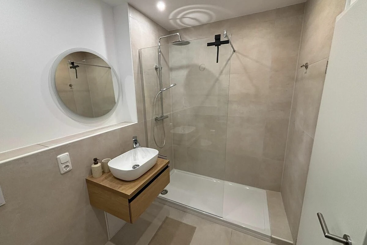 Der Wohn- und Essbereich ist offen und lichtdurchflutet gestaltet und lädt zum gemeinsamen Verweilen ein. Die Küche ist funktional und hochwertig ausgestattet, sodass sich Urlauber unkompliziert selbst versorgen können. Separate Schlafbereiche sorgen für Rückzugsmöglichkeiten und erholsame Nächte; moderne Bäder bieten Komfort für den täglichen Bedarf.