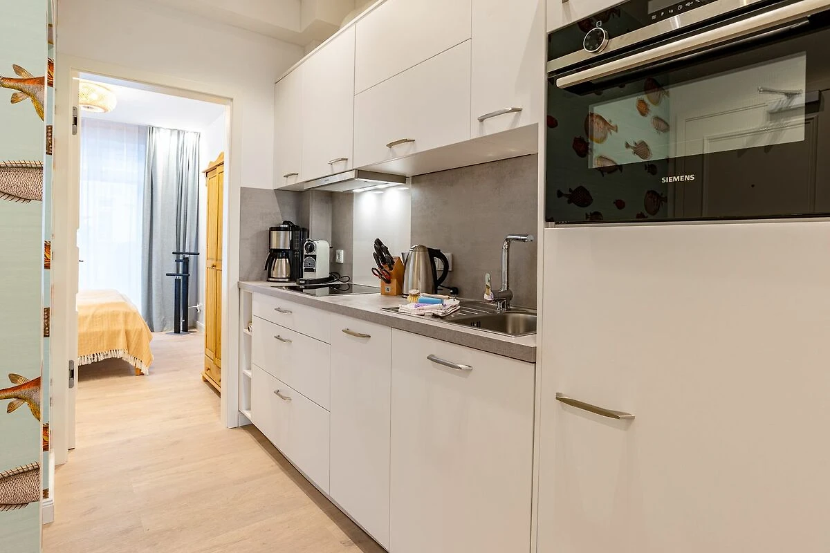 Die Ferienwohnung „Strandliebe“ im alten Kapitänshaus wurde im Jahr 2025 aufwendig renoviert und bietet komfortabel Platz für bis zu zwei Personen zuzüglich einer Kleinkinderaufbettung. Auch ein kleiner bis mittelgroßer Hund ist auf Anfrage herzlich willkommen.
