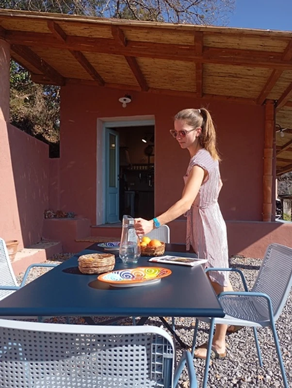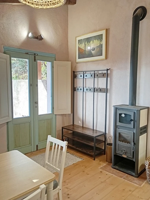 Genießen Sie Ihre Mahlzeiten auf der überdachten Terrasse mit Gartenmöbeln oder entspannen Sie im gepflegten Garten – perfekt für sonnige Nachmittage oder laue Abende. Für kulinarische Erlebnisse steht Ihnen eine voll ausgestattete Küche mit Gasherd, Kühlschrank, Wasserkocher und allen nötigen Utensilien zur Verfügung. An kühleren Tagen sorgt der Kamin für behagliche Wärme, während die Klimaanlage im Sommer angenehme Frische spendet.