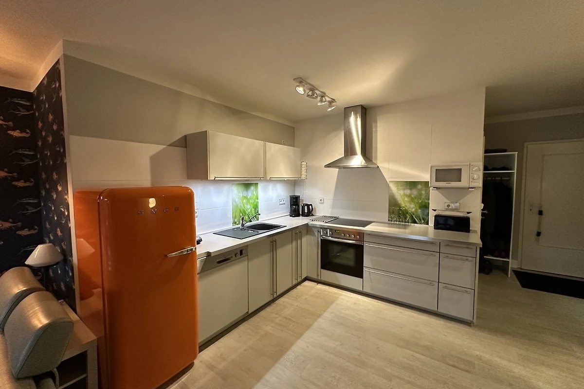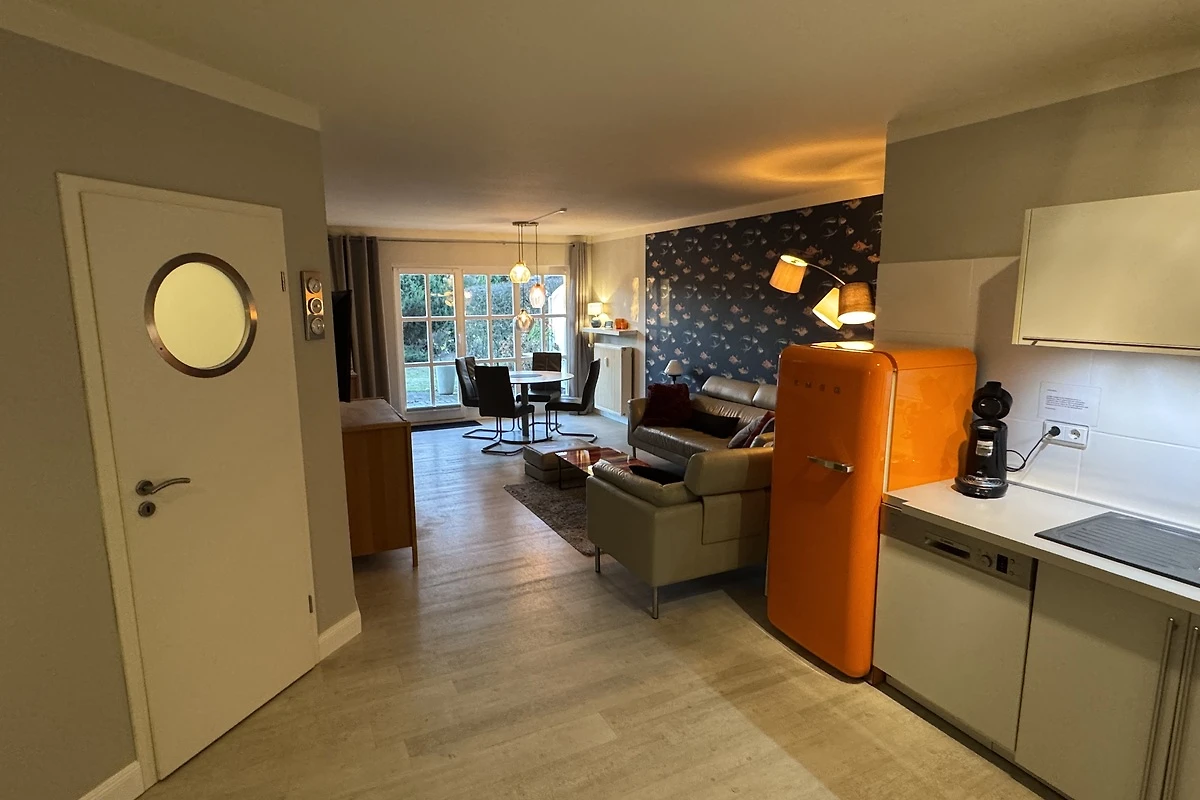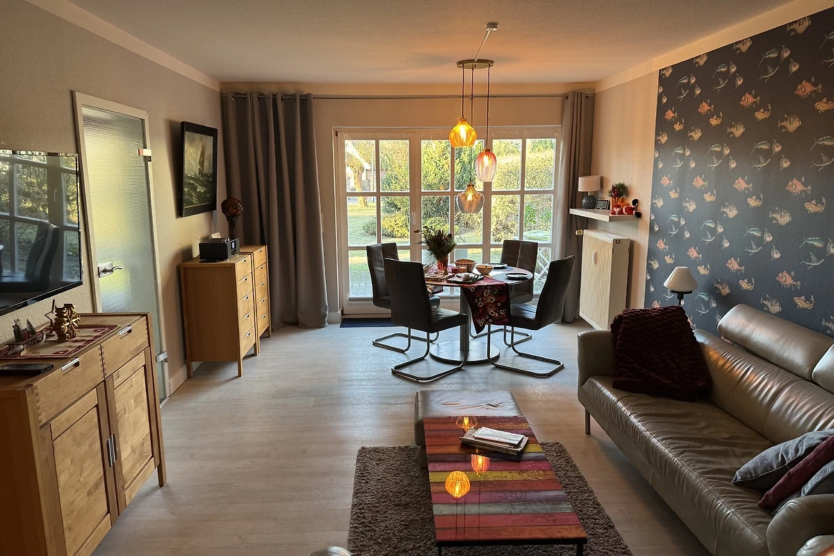 Willkommen in der Ferienwohnung Ahoi Darß Koje Born (ehemals Gute Stube) – Ihrem Rückzugsort für erholsame Tage zu zweit auf dem Darß! Auf großzügigen 70 m² erwartet Sie ein liebevoll eingerichtetes Refugium in Born a. Darß, das mit einem Schlafzimmer und einem modernen Bad viel Platz für Entspannung bietet. Nach einem langen Tag an der frischen Ostseeluft genießen Sie wohltuende Momente in der hauseigenen Sauna, die für pure Erholung sorgt. Die offene Küche ist vollständig ausgestattet – inklusive Mikrowelle – und lädt dazu ein, gemeinsam zu kochen und den Tag bei einem guten Essen ausklingen zu lassen. Für gemütliche Abende stehen Ihnen ein komfortabler Wohnbereich mit TV sowie eine bequeme Couch zur Verfügung. Frische Bettwäsche ist selbstverständlich für Sie vorbereitet, sodass Sie sich direkt wie zu Hause fühlen können. Die Wohnung ist ausschließlich für Nichtraucher reserviert und bietet damit ein angenehmes, sauberes Wohnklima. Hochwertige Böden und stilvolle Details schaffen ein behagliches Ambiente, das zum Verweilen einlädt. Starten Sie Ihren Tag mit einem Frühstück am großen Esstisch oder entspannen Sie nach einer ausgedehnten Radtour auf dem Darß in Ihrer privaten Wohlfühloase. Entdecken Sie die perfekte Unterkunft für Ihren nächsten Urlaub zu zweit!