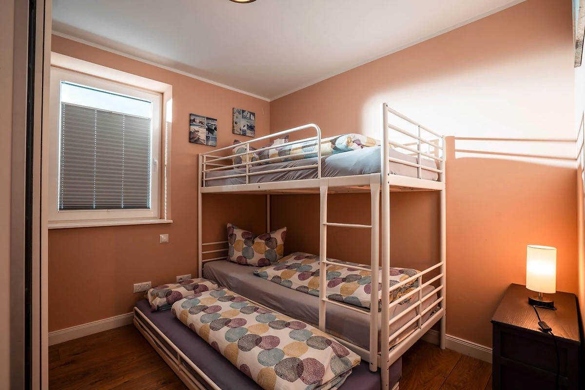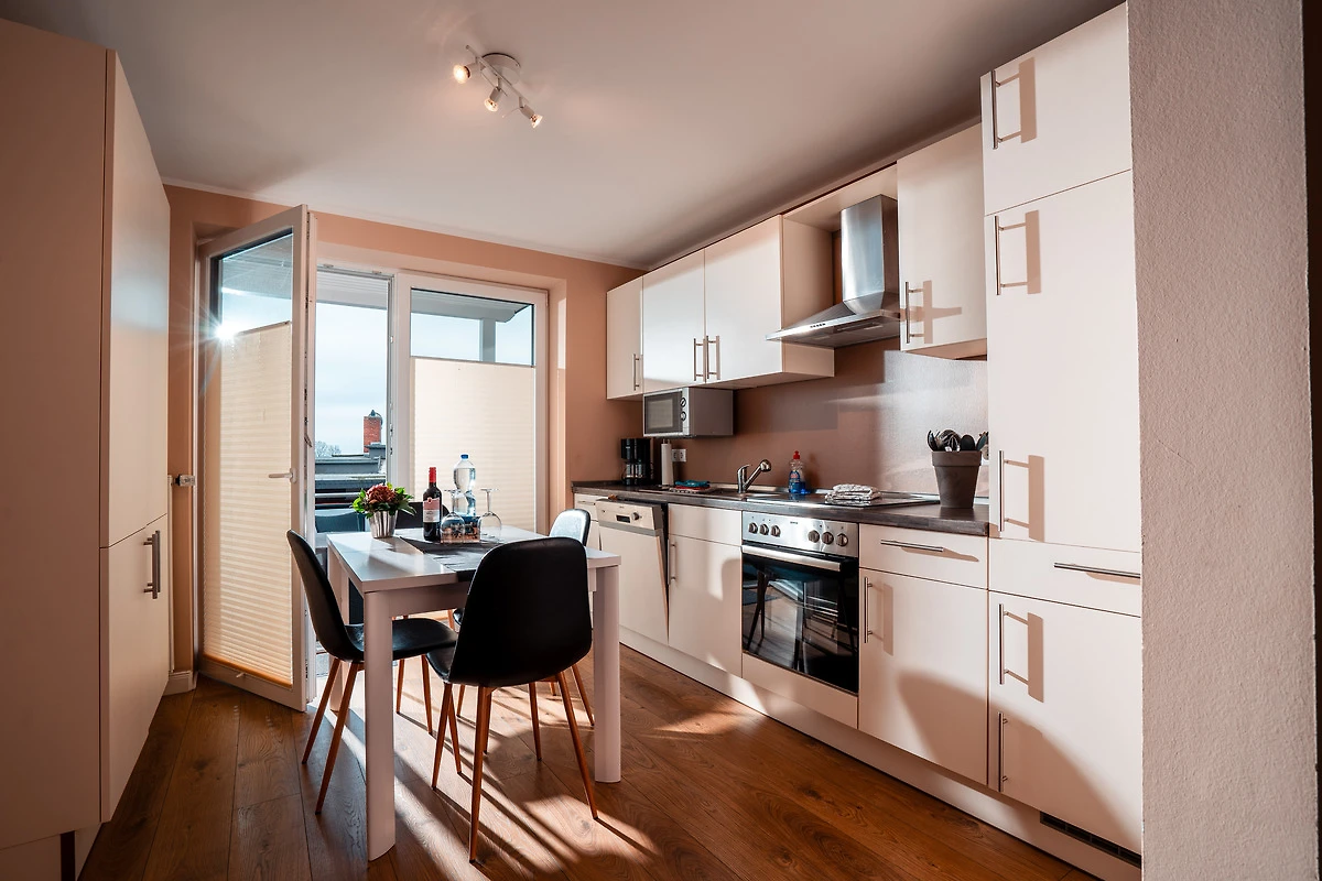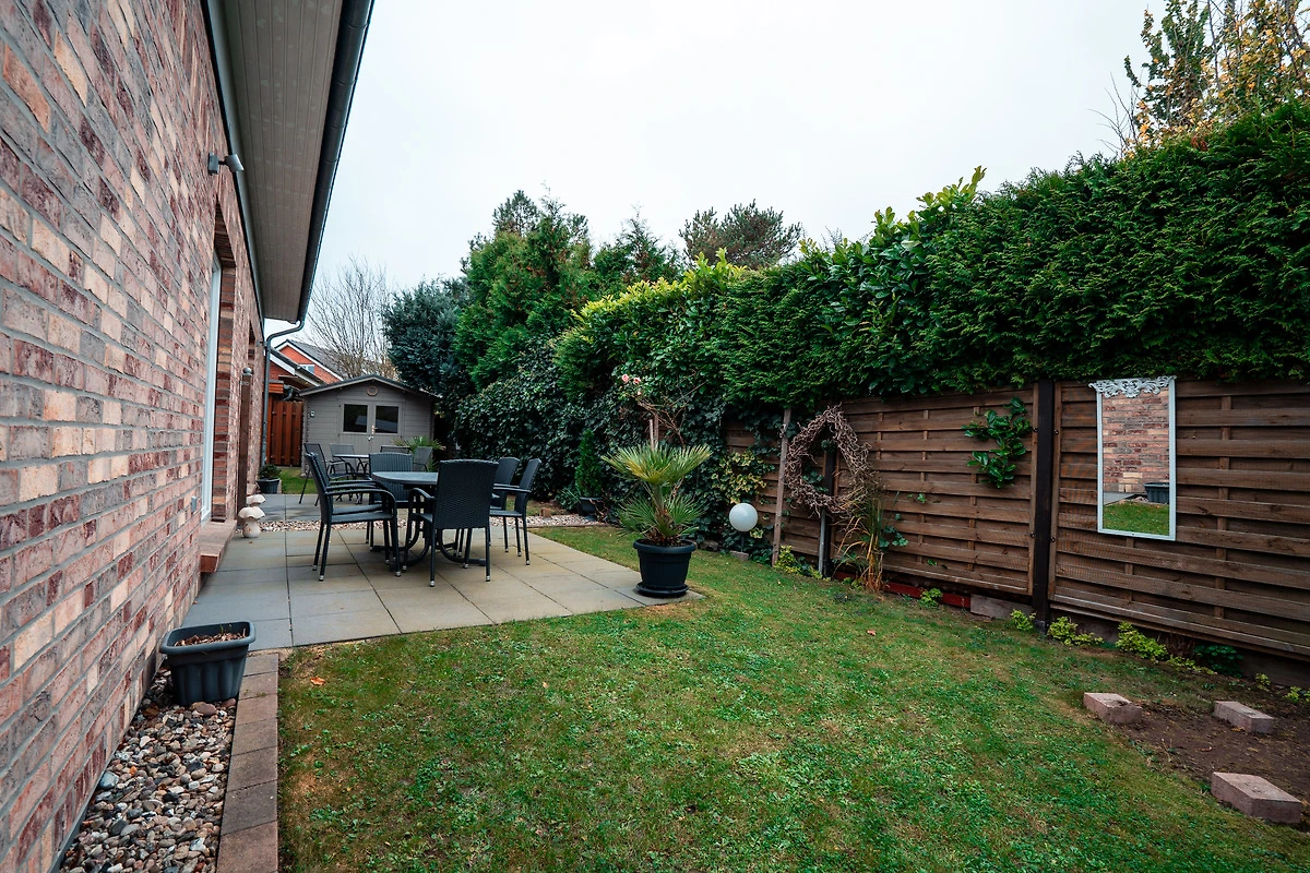 Willkommen im Haus Viereck – Ihrem Feriendomizil in Rettin an der Lübecker Bucht! Hier genießen bis zu vier Gäste auf 60 m² einen entspannten Urlaub in freundlicher Atmosphäre. Zwei Schlafzimmer mit Bettwäsche und Handtücher sorgen für erholsame Nächte und Komfort. Das helle Wohnzimmer lädt mit TV und schnellem WLAN zu gemütlichen Abenden ein. Die offene Küche ist mit einer praktischen Küchenzeile, Geschirrspüler, Mikrowelle, Wasserkocher und Kaffeemaschine ausgestattet – ideal für kulinarische Genüsse. Ein Balkon und eine großzügige Terrasse erweitern den Wohnraum ins Grüne und bieten viel Platz für gesellige Stunden im Freien. Für Ihren Komfort stehen Ihnen im Bad neben der Dusche und WC außerdem eine Waschmaschine, ein Trockner, Bügeleisen und ein Haartrockner zur Verfügung. Ein eigener Parkplatz direkt am Haus sorgt für bequemes Ankommen. Die Unterkunft ist ausschließlich für Nichtraucher – so genießen Sie stets frische Luft. Zu Fuß erreicht man den Badestrand in 5 - 10 Minuten, den Surfstrand in 15 Minuten. Die Ostsee ist hier flach und deshalb sowohl für Kite- und Windsurfer als auch für Familien mit kleineren Kindern sehr gut geeignet. Eine Abstellmöglichkeit im Gartenhaus (abschließbar) für mitgebrachte Fahrräder oder Kite-Ausrüstung ist vorhanden. Parkplatz befindet sich direkt am Haus.
