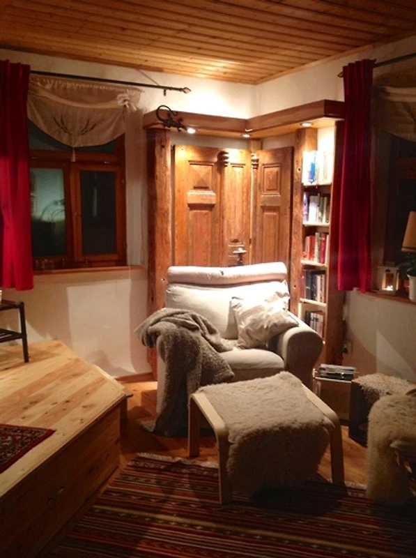 Auch an verregneten Tagen kann man hier im tiefen, gut ausgeleuchteten Lesesessel in fremde Romanwelten versinken, meditieren oder Musik hören.
