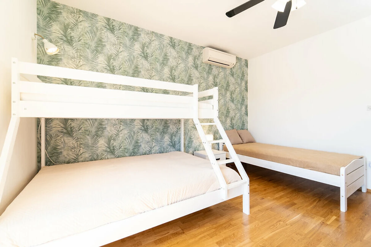 Die Villa Velebit ist ein freistehendes, massiv gebautes Ferienhaus mit ca. 150m² Wohnfläche, das auf einem rund 4.000 m² großen, eingezäunten Grundstück liegt. Das Anwesen eignet sich ideal für Familien oder Gäste, die Wert auf Ruhe, Platz und Privatsphäre legen.