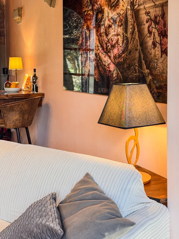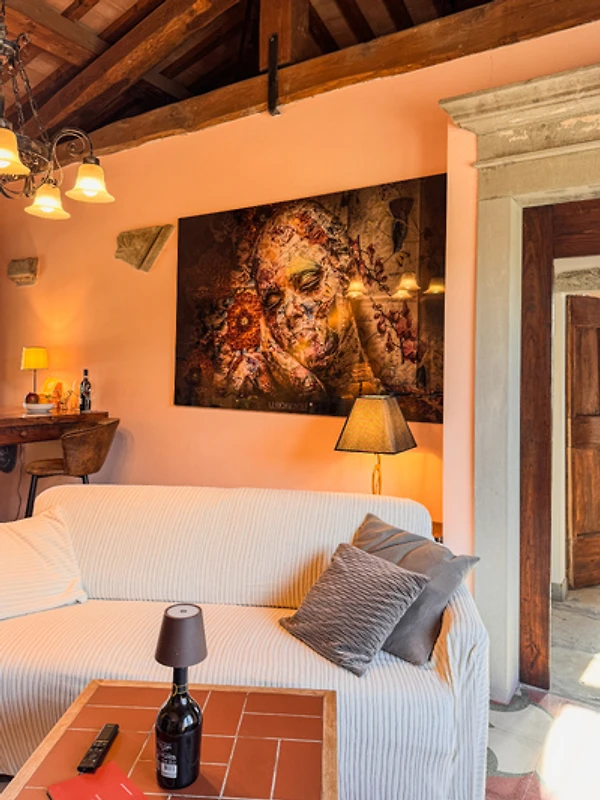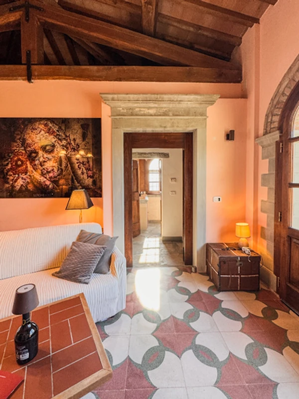 Willkommen in der Ferienoase Two Birds one Room – La Villa ARTE del Lupo in Subbiano, im Herzen der Toskana. Dieses charmante Refugium bietet auf 60 m² ein behagliches Zuhause für zwei Gäste, die Privatsphäre und Komfort suchen. Das Schlafzimmer lädt zum Entspannen ein, während das moderne Bad mit Haartrockner überzeugt. Die voll ausgestattete Küchenzeile mit Geschirrspüler, Wasserkocher und Kaffeemaschine macht Selbstversorgung zum Vergnügen. Für gemütliche Abende sorgt ein Kamin, während Klimaanlage und WLAN ganzjährig für Wohlbefinden und Konnektivität stehen. Bettwäsche, Waschmaschine und TV sind selbstverständlich vorhanden.Mehr Fotos und Video auf